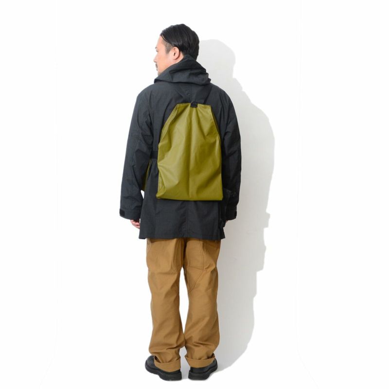 本体素材は210Dナイロンにポリカーボネートのコーティングを施した生地を使用。PUコーティングに比べ剥離の耐久性が強く生地自体の防水性の持続性にも優れた素材になっています。