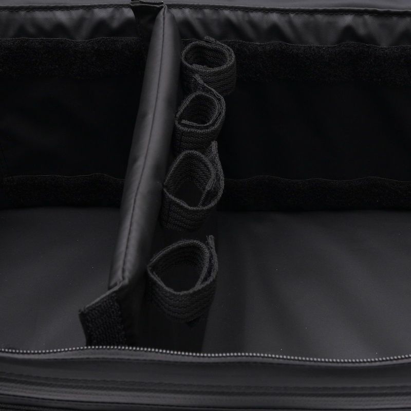 カメラケースを縫製する工場で作られるAS2OV コンテナ。中身をお好きな場所へウレタンパッドの仕切りをマジックテープで装着出来ます。