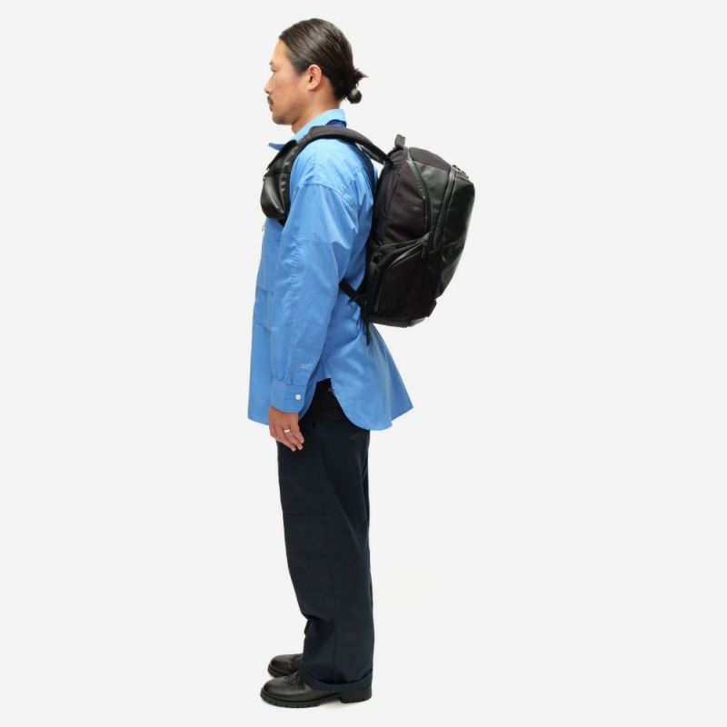 ビジネスとレジャー、どちらのシーンにも対応する多機能バックパック。 メインルームは衣類とビジネスアイテムを分けて収納できる2ルーム構造で、スタイルや用途に合わせて選べる3サイズ展開です。 耐水性・耐久性・軽さを追求し、オリジナルに開発した2種類の素材をメインに採用。 取り外し可能なガジェットボードにはスマートフォンやモバイルバッテリーなどを自由に配置でき、必要なデバイスをすぐに取り出せます。 15インチまでのノートパソコンを安全に収納できる専用ポケットを搭載。 クッション性の高い素材でデバイスを保護し、ビジネス出張でも安心です。 「BLEISURE SERIES」 Bleisure(ブレジャー)とは、「Business(仕事)」と「Leisure(遊び」を融合させた新しいライフスタイル。 出張、通勤、休日のアクティビティまで、あらゆるシーンに活躍する万能バッグです。 高い耐久性と耐水性を備えた、330D×1100D CORDURA® 3レイヤーや600D POLYCARBONATEを使用。Woojin製バックルやYKKファスナーなど、世界基準の品質パーツを採用しています。 MOVABLEGADGET BOARD スマートフォンやモバイルバッテリー、その他のガジェットを自由に配置できる取り外し可能なガジェットボード。 ビジネスシーンでもレジャーシーンでも、必要なデバイスをすぐに取り出せます。 PC STORAGE 15インチまでのノートパソコンを安全に収納できる専用ポケット。クッション性の高い素材でデバイスを保護し、ビジネス出張でも安心して持ち運べます。 GPS CARD POCKET 別売のGPS追跡カードを収納できる専用ポケット。荷物の位置を常に把握でき、盗難や紛失時の安心を提供します。 BEACON SMART PASSはこちら CHARGING CABLE PASS 充電ケーブルを外部に通せるケーブルパス機能。モバイルバッテリーをバッグ内に入れたまま、スマートに充電できます。 MOVABLE POUCH 出し入れが可能なポーチ。貴重品などを安全に持ち運び、さっと取り出すのに便利な設計です。 BACKPACK比較表 BACKPACK M/LとDAYPACKは共通の機能を持っていますが、一部機能がないモデルや仕様が異なるものがあります。各モデルの違いを比較表でご確認ください。 BACK PACK Mサイズはこちら BACK PACK Lサイズはこちら
