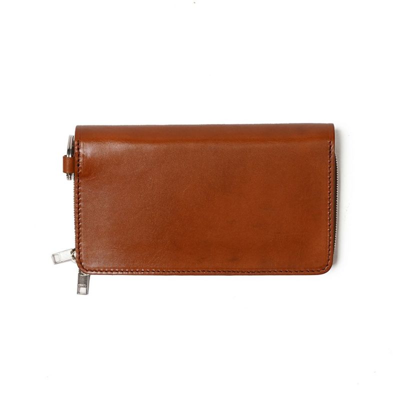本体レザーには、原皮から時間をかけ、タンニンとなめし剤に漬け込みなめした事で、革の芯までタンニンを浸透させています。 製造工程の段階で環境汚染の原因となる薬品や有害物質を使用せず植物タンニンオイルを主としております。 職人の手作業によるオイルの塗り込みやグレージング、アイロンかけを重ね深みのある風合いに仕上げております。 手作業により、自然のムラ感のある表情が特徴となっております。
