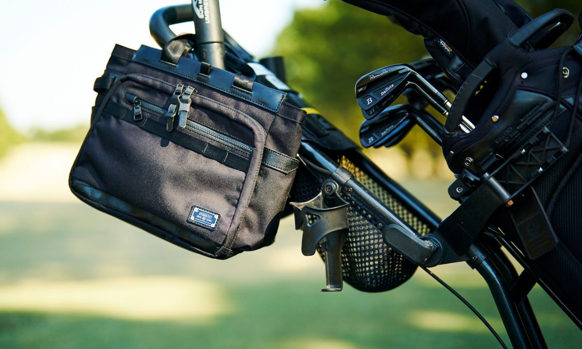 カートにも引っかけられるラウンドで活躍するコンパクトトート。上質な革とバリスティックナイロンの組み合わせで使い勝手が良いいのはもちろん。豊富な収納と新しい工夫はゴルフ場を超えて毎日の生活に持ち出したくなってしまうかも。
