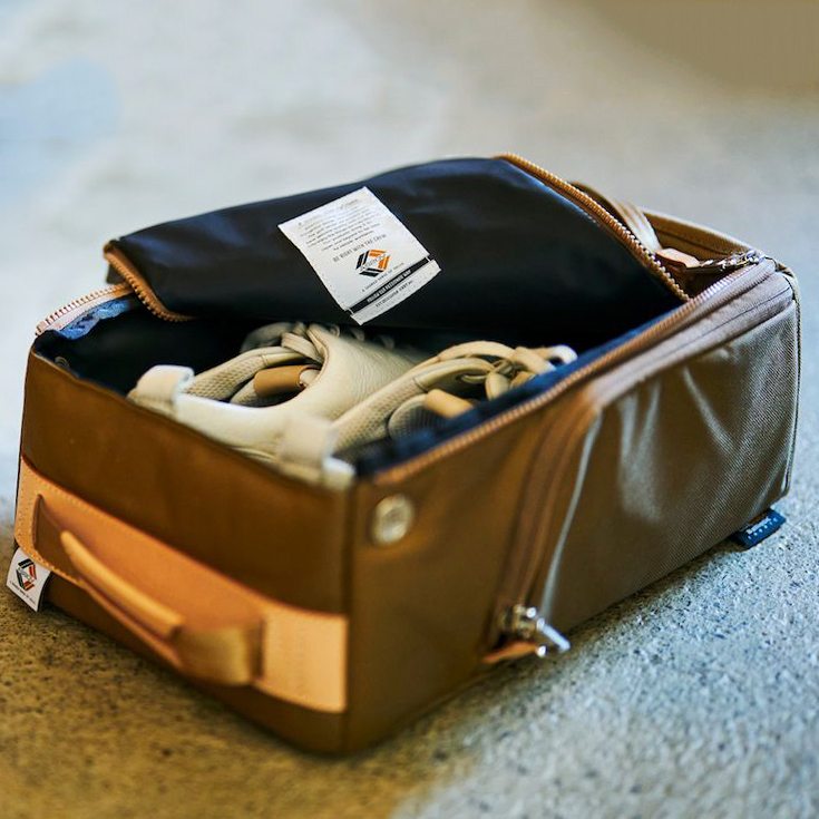 本モデルバリスティックナイロンと革の質感が目につきますがこだわっているところは実は利便性。サイドポケットのドリンクホルダー箇所には保冷素材のが貼付。ハンドル部分にバックルが付いておりカートにも引っかけられたり。背面にはスマホポケットも配置しています。