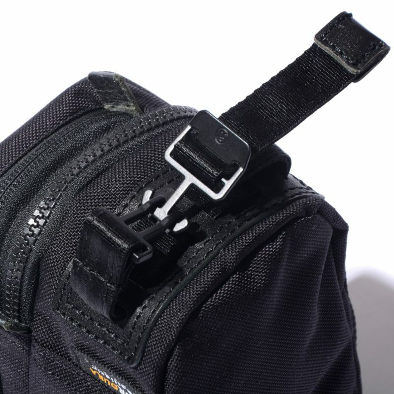 BALLISTIC SERIESならではのケース中央に見える真鍮のロゴプレート。そして持ち手にもなり、ちょっとした場所にかける事ができるオリジナルの引っ掻きカン実用的でありながらデザインとしてもアクセントになります。
