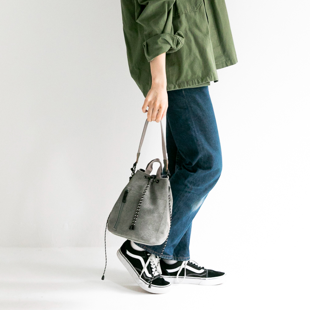 ころんとしたフォルムとAS2OVらしい質感にこだわったスエードの素材感が魅力。スエードならではの鮮やかな発色と500mlのペットボトルも入る収納力で使い勝手のよいモデル。