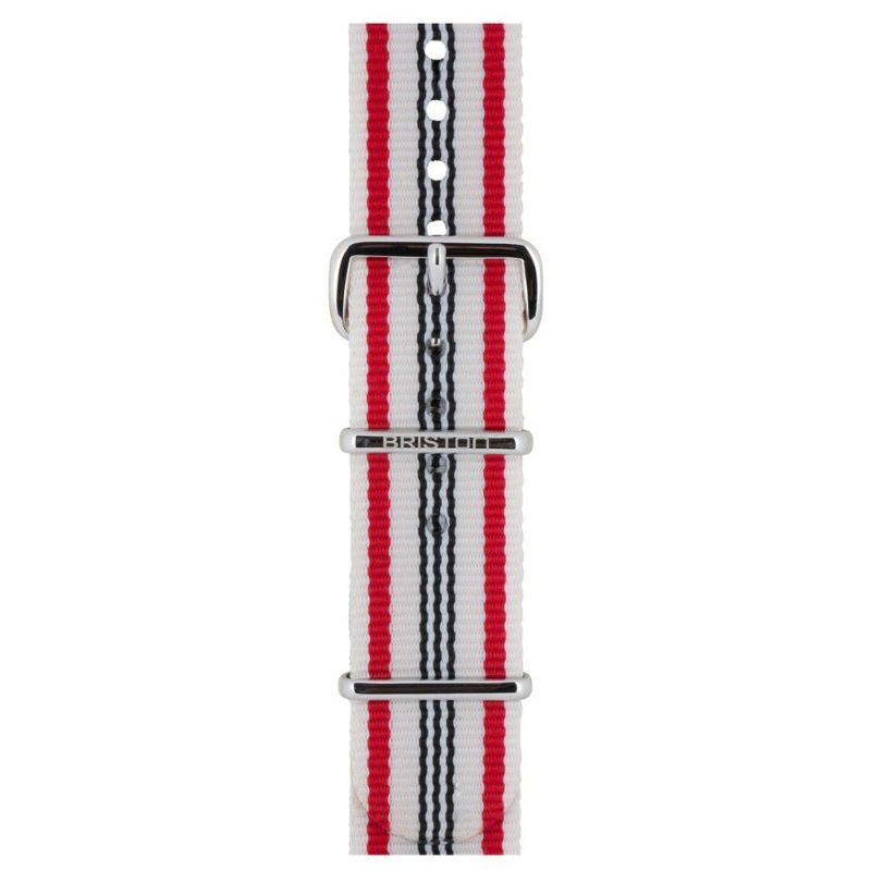 素材 : ナイロン、ステンレス 防水性 カラー : ストライプ柄(ベージュ、レッド、ネイビーブルー) カラーループ&バックル : 研磨仕上げスチール