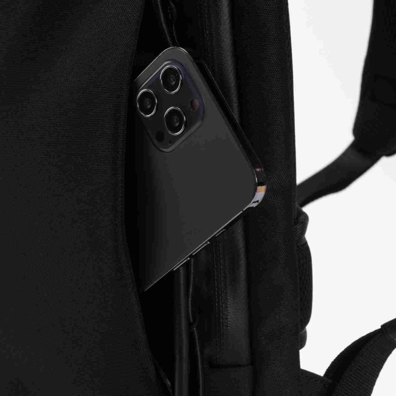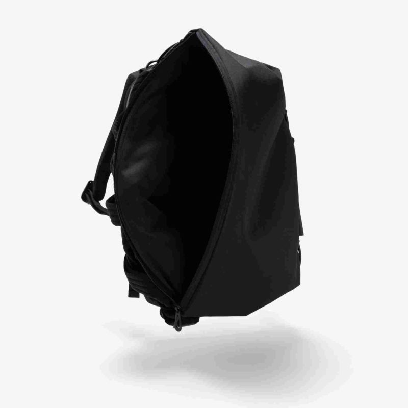 バックパックの本体は耐久性のあるブラックのEcoYarn生地で作られています。