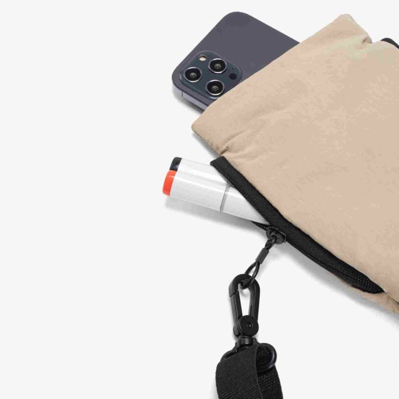 côte&ciel シリーズの新しいシルエットであるTAROはネックポーチに似ており、携帯、鍵、財布、パスポートなどの小さな持ち物を持ち運ぶのに最適です。側面には安全なジッパー開口部があり、上部には簡単にアクセスできるので、物をすぐに入れることができます。