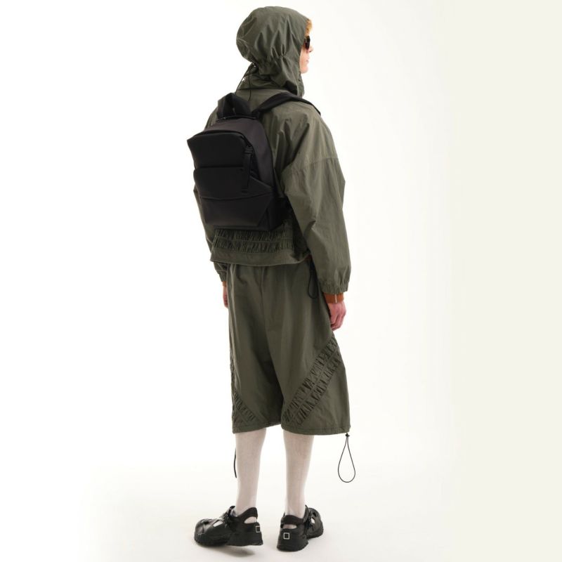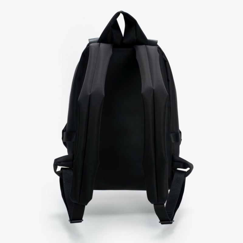 「スリーク ブラック」ナイロン使用のこの多用途のバックパックは、より持ち運びやすい形で実用性とスタイルを兼ね備えています。