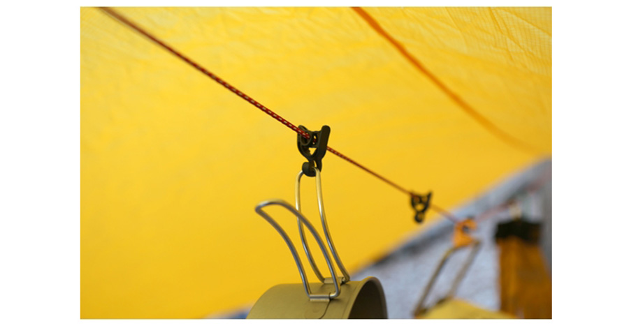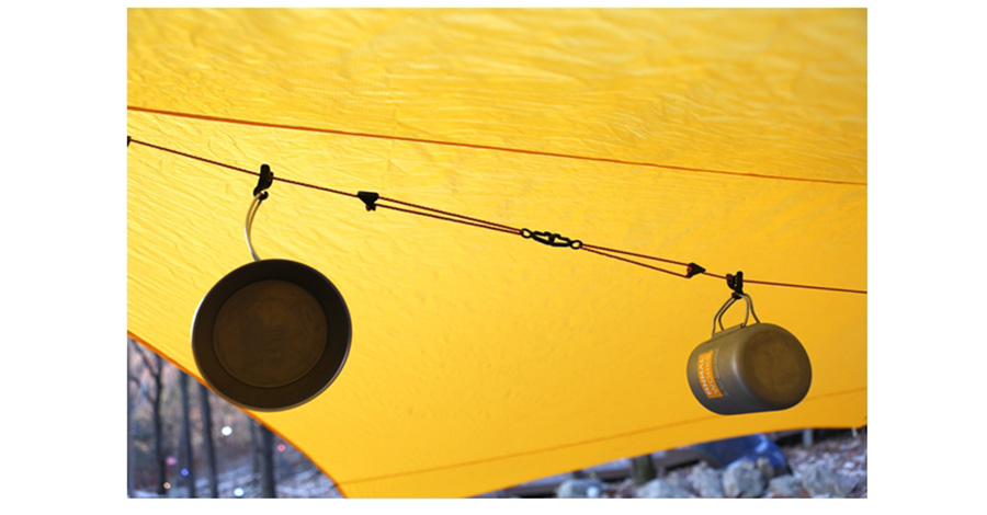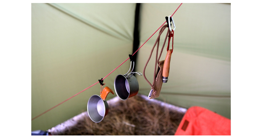 両サイドにはフック、紐には自由に移動できるストッパーがあります。