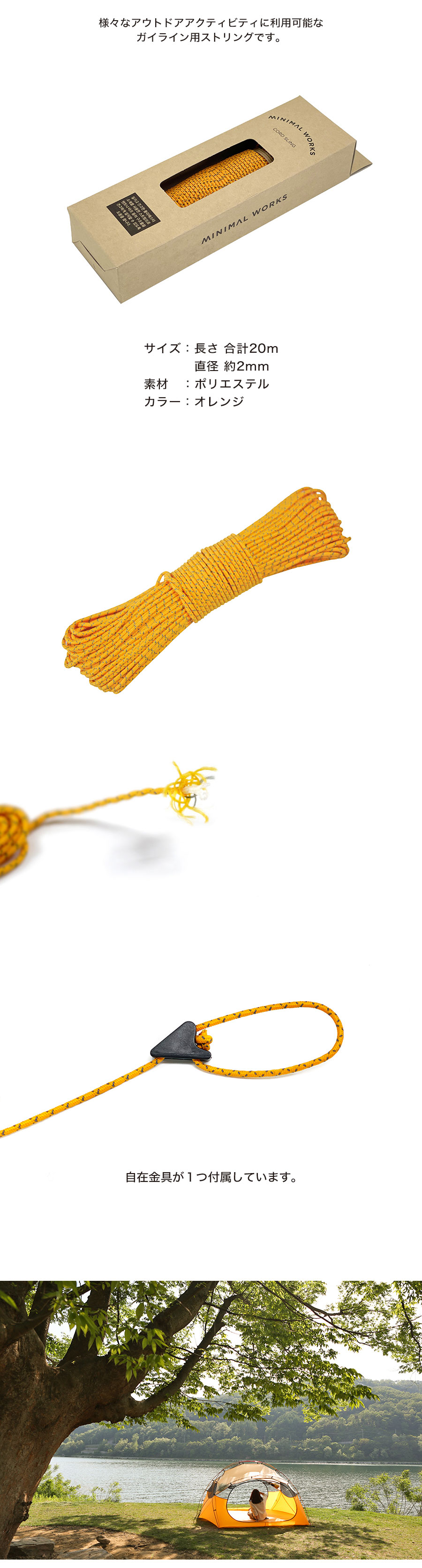 UNBY株式会社(unby.jp)はMINIMAL WORKSの日本総代理店です。 全てのアウトドアーシーンで使用できるガイライン用ストリングです。 商品の付属品やパーツ等は一部デザインやカラー変更・仕様変更となる場合がございます。 予めご了承くださいませ。