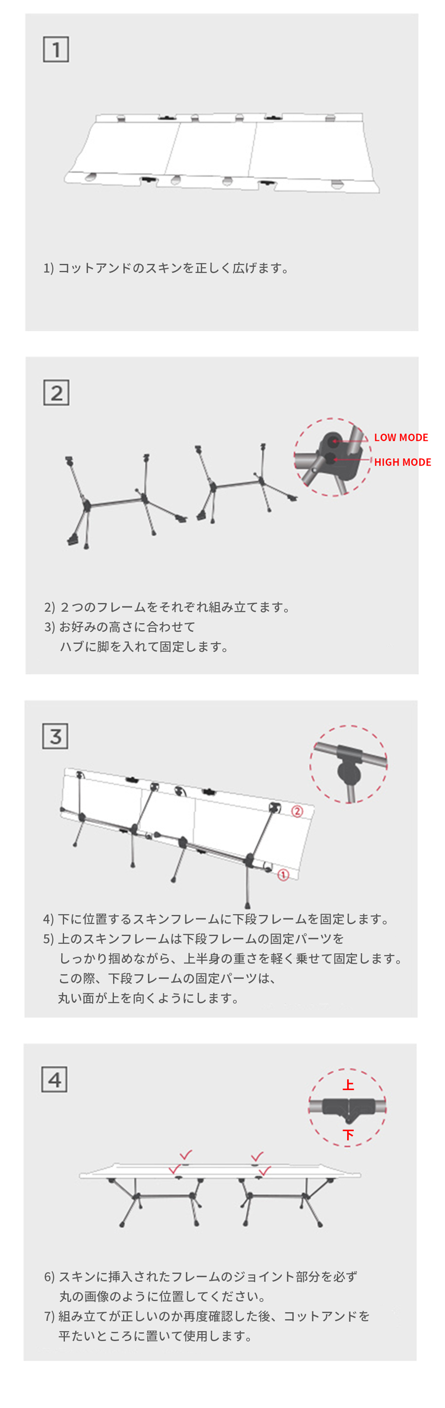 コットアンドスキンにサイドフレームを内蔵してフレームの挿入、取り出し作業をなくして、素早さ&組み立てやすさをアップしました。