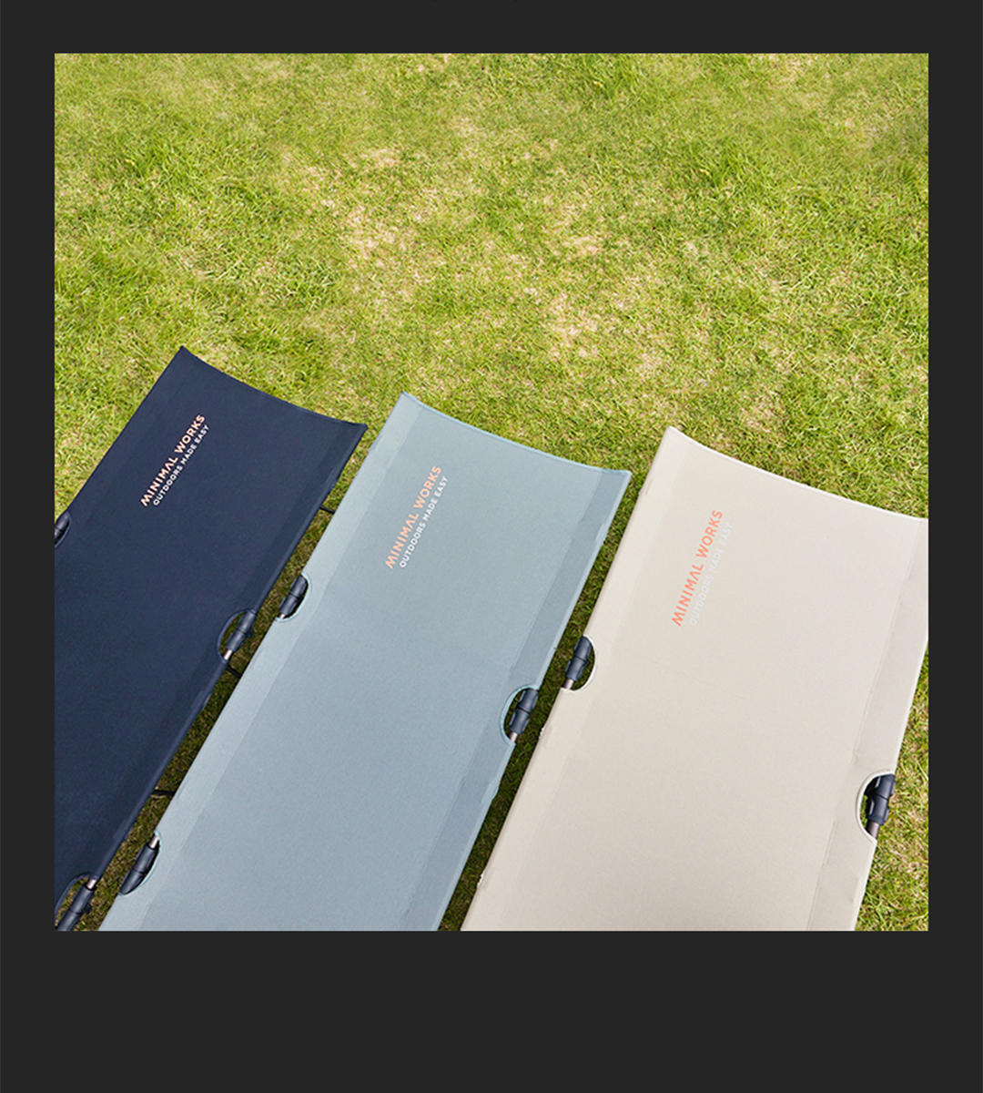 ミニマルワークスのコットアンドは、ミニマルワークスが開発・制作したシンプルコットレイジーとライトコットAの長所を組み合わせて、ミニマルワークスだけのノーハウで制作したコットです。