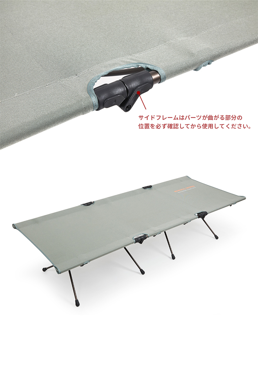 既存のライトコットAに比べて少し広くなった横幅で、より快適なコットの使用が可能です。