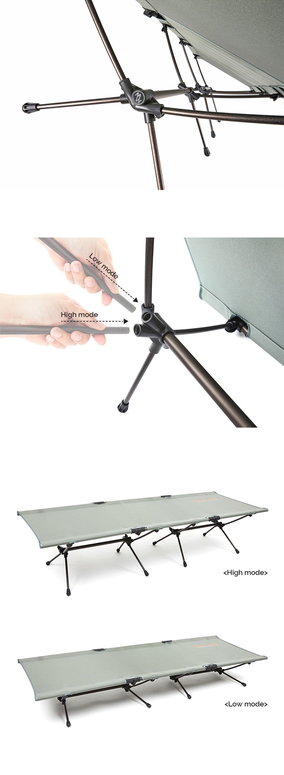コットアンドのフレームは、軽くて丈夫なDuraluminポールとAluminiumポールを使用しています。
