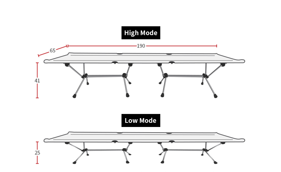 HIGH - W190 x D65 x H41cm, LOW - W190 x D65 x H25cm