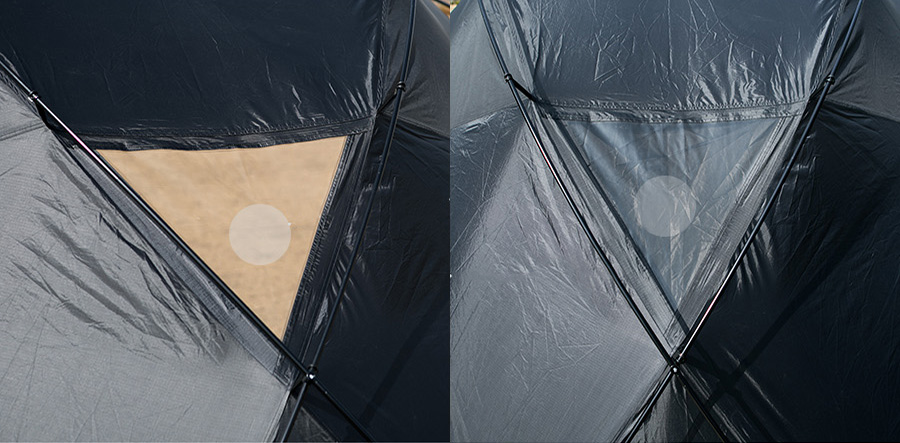 グラマーシェルターD PLUSの後面にはイメージのようなウレタン窓が追加されました。