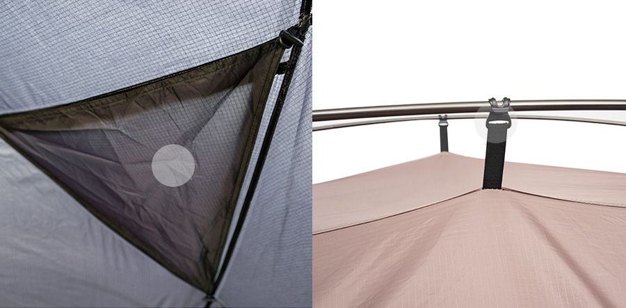 初心者でも素早く簡単に設置可能なクロスポール構造、通気性を考慮した両サイドのメッシュ窓