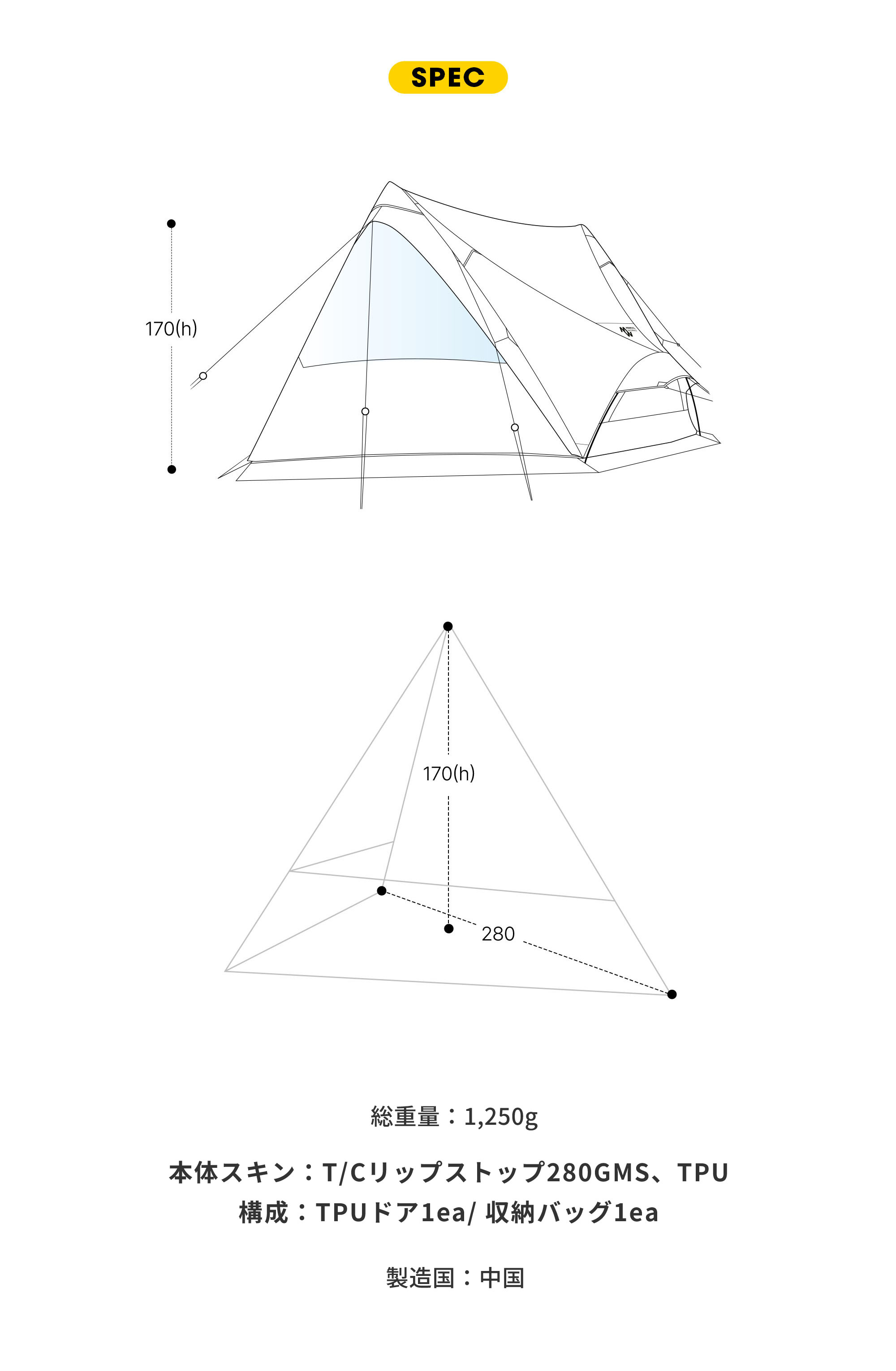 使用時:280x170(h)cm