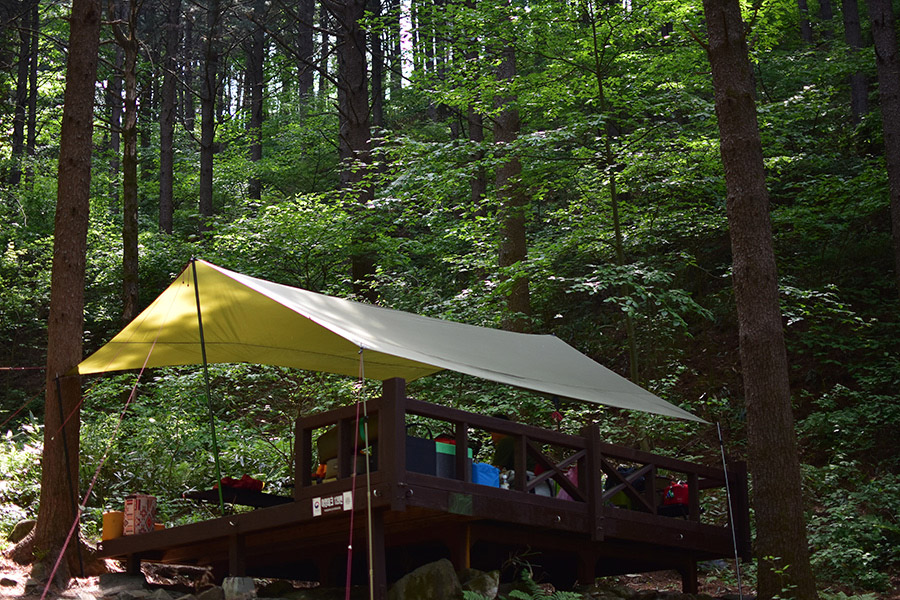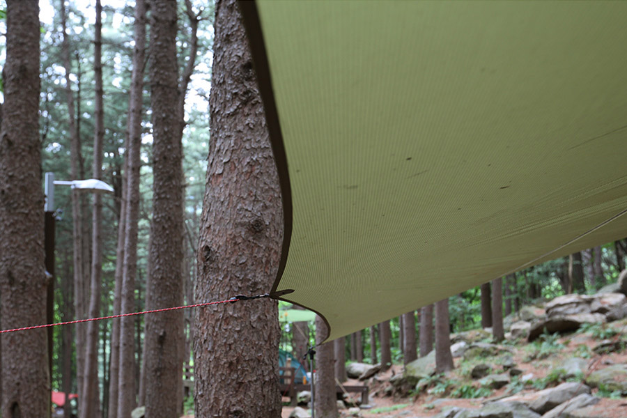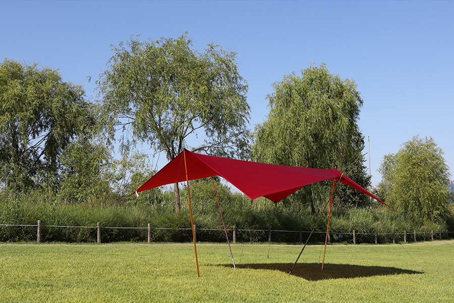 ミニマルワークスのマンゴシェードマジェスティは4m40cmの正方形サイズのシリコンコーティングされた軽量レクタータープです。