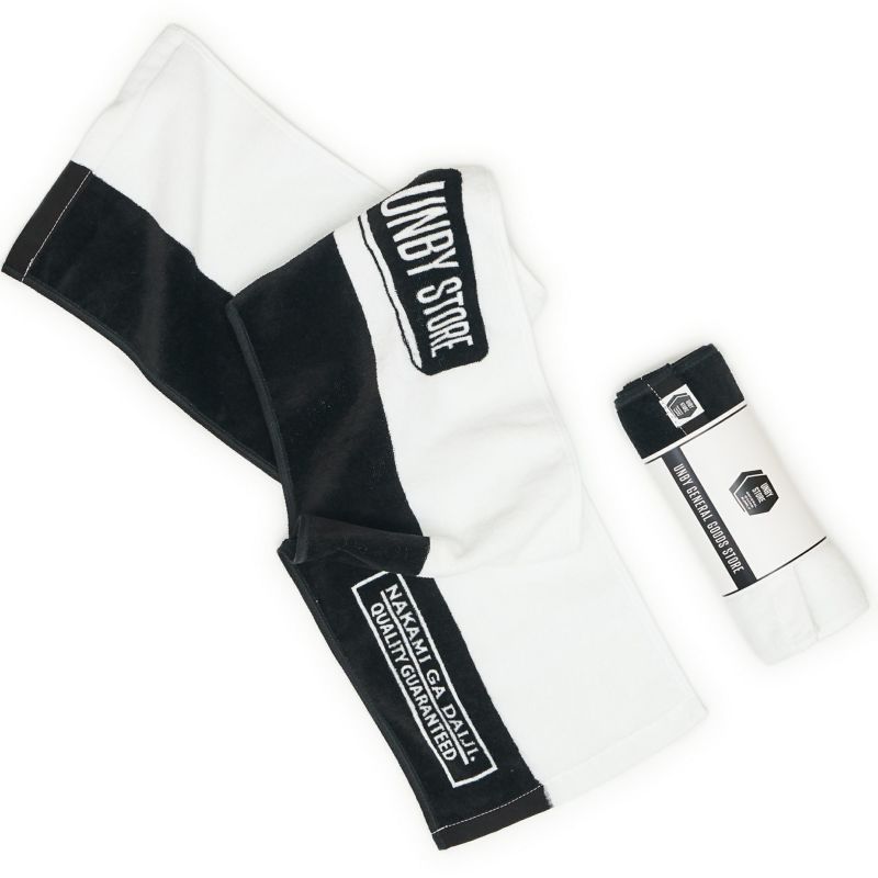 本体素材には,今治産のコットン100%を使用しています。 UNBY ORIGINAL TOWELは、マフラータオルと、ビーチタオルの2種類。 マフラータオルは、片面シャーリングの両面プリント。ビーチタオルは、ジャガード織りを採用しています。