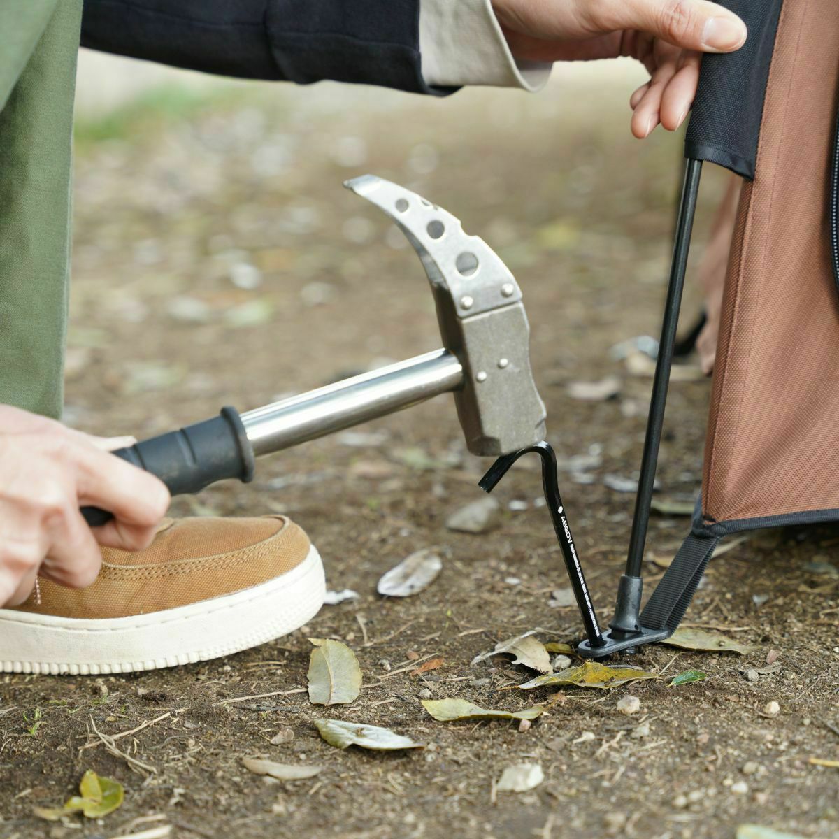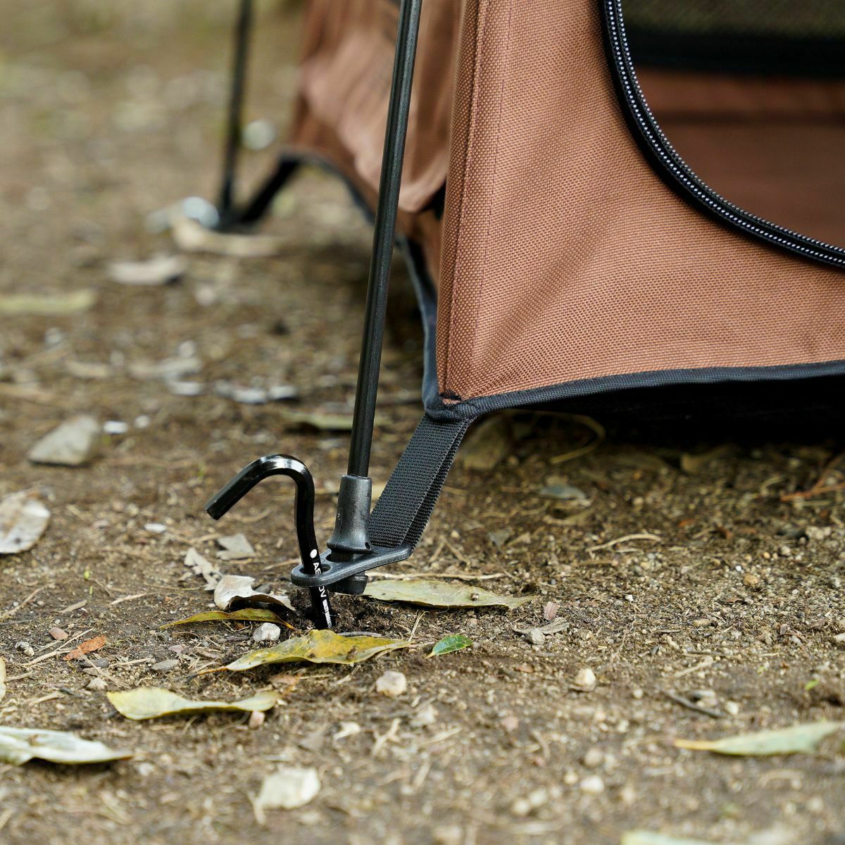 リーシュコードを使用されない場合でも、屋外での使用の際にはペグダウンをしてご利用ください。風が吹いてきたとき、その他突発的な出来事に対しても、テントを固定し安定させます。