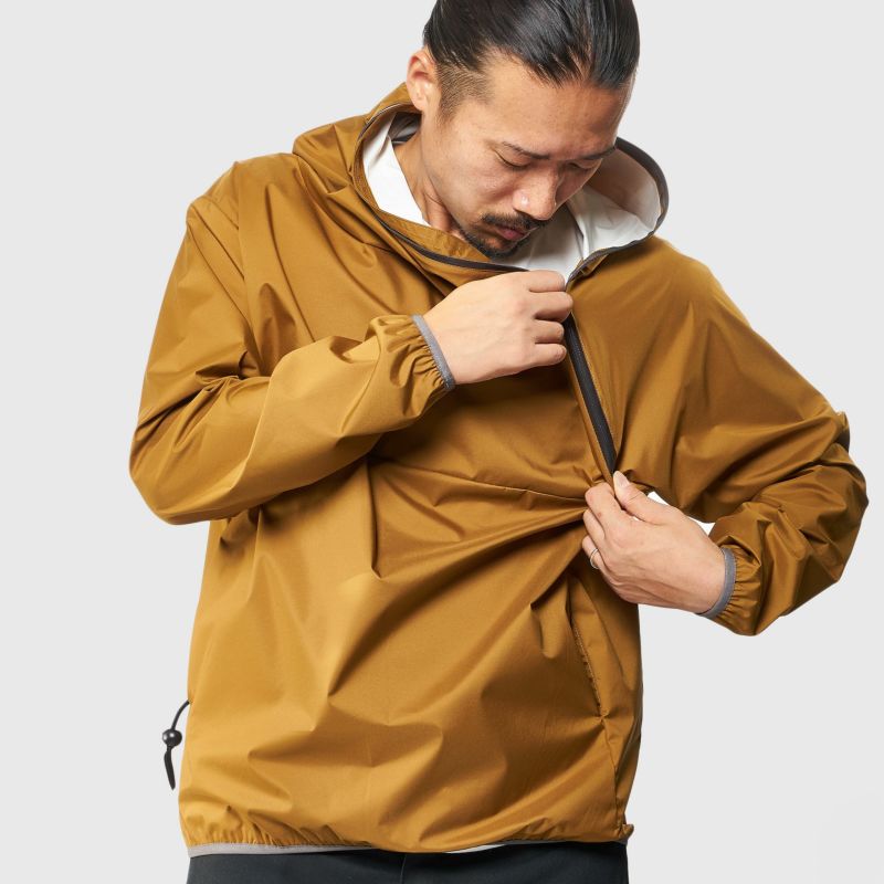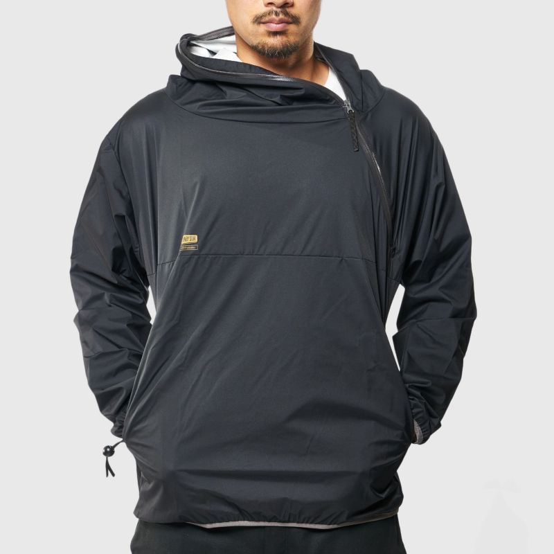 CAMP SERVICEのSLASH PARKA”(スラッシュパーカー)UNBY別注モデルです。 ボディは防水、透湿、保温、ストレッチ性を兼ね備えた機能素材ZAMZA®を使用しアクアガード(止水)ファスナーを斜めに走らせた独自デザインはまさにミリタリーアウトドア。 右にUNBYのロゴがプリントされています。 目だけ出る位置にジッパーをとめたり、アウターのインナーとして着てもつかえます。 また、パッカブルタイプなので旅のお供にも重宝します。