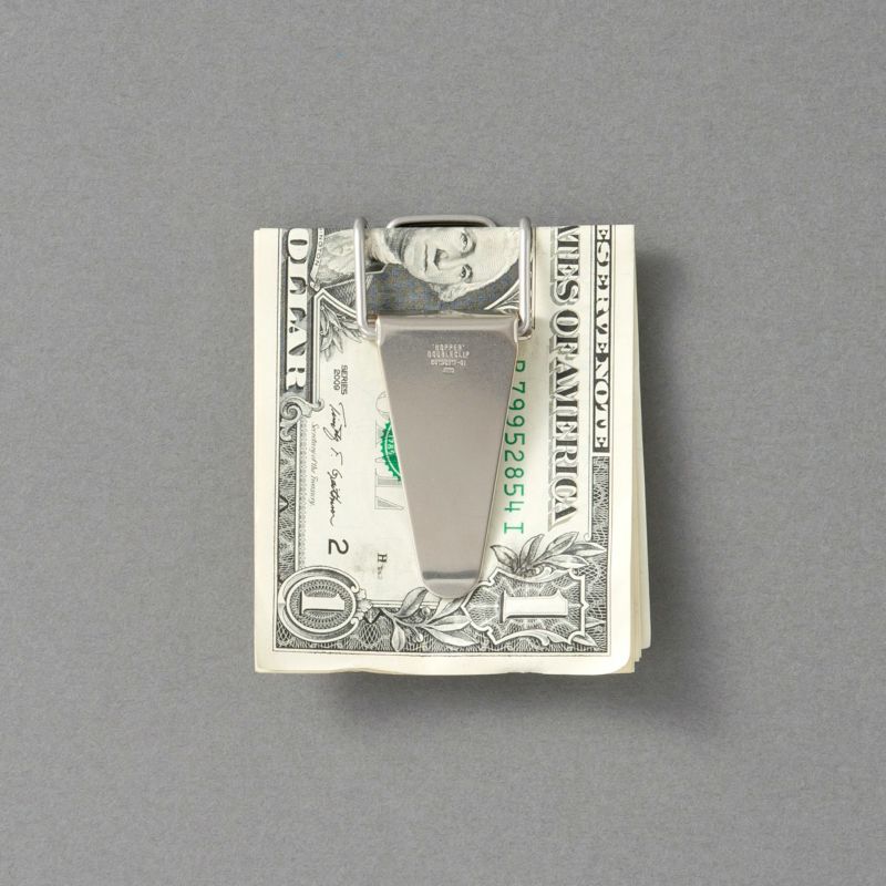 1930、1940年頃に製造されていたマネークリップの機構をベースにカードホルダーなどの機能を新たに追加し制作。 お札は20枚まで、クレジットカードは6枚まで収納できます。 candy design works デザイナーインタビューはこちら