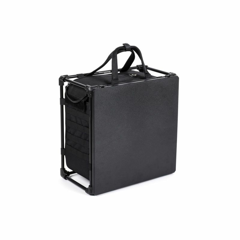 タクティカルフィールドオフィスMは、バッグとテーブルが組み合わさった商品です。スピードスツールやチェアを組み合わせることで、いつでもどこでもすぐに、マイオフィスを設置することが可能です。また、キャンプでは、キャンプ用品を収納運搬でき、ソロ用のテーブルやキッチンステーションに早変わりできます。