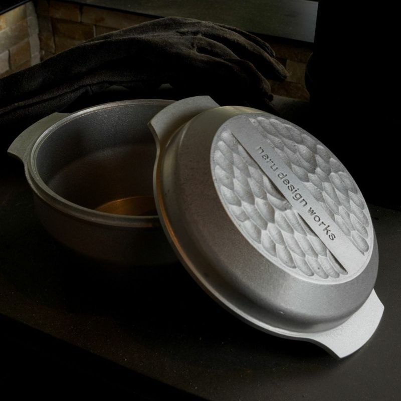 READYMADEさんとコラボで作成したアルミ鋳造のダッチオーブン。 蓋のデザインはオリジナルで作成。手仕事の跡を残したかったので、yanspoonでお馴染みのyangraverさんに掘ってもらった木型を蓋の意匠に使用しています。 鋳造した本体をひとつひとつ研磨して仕上げています。鋳造と研磨という敢えて手間のかかる方法で作成したのは、ひとつひとつに仕事の跡を残したかったから。 使い込むことで、自分だけの道具になっていくと思います。 今回わざわざアルミでダッチオーブンを作ったのは、もっと日常的に使えるようにしたかったから。ダッチオーブンを持っている人は多いと思いますが、段々使わなくなってしまうんですよね。 理由は、手入れと持ち出すのが面倒だから。 アルミ鋳造のダッチオーブンはびっくりするほど軽くて、ラフに扱っても問題なし。手入れも普通に洗って乾かすだけ。 そして秀逸なのはこのサイズ感。大き過ぎず、小さ過ぎない絶妙のサイズ感です。お米は2合炊きがちょうど良いですが、3合でも炊けます。