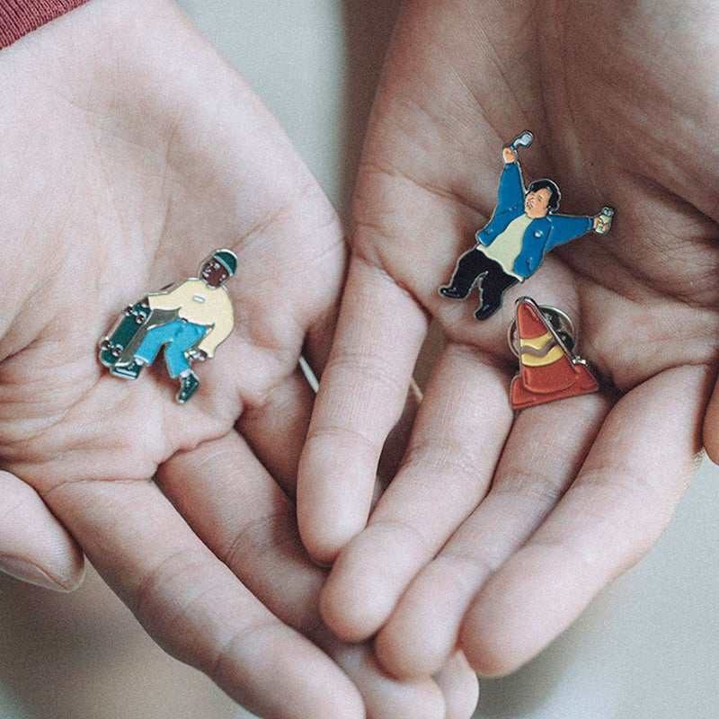 尼崎在住のイラストレーターTimが手掛けたSANTOWN (サンタウン)のOh! Pinsです。 3つ揃うととても面白い絵になります。