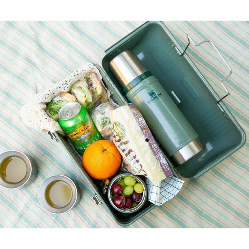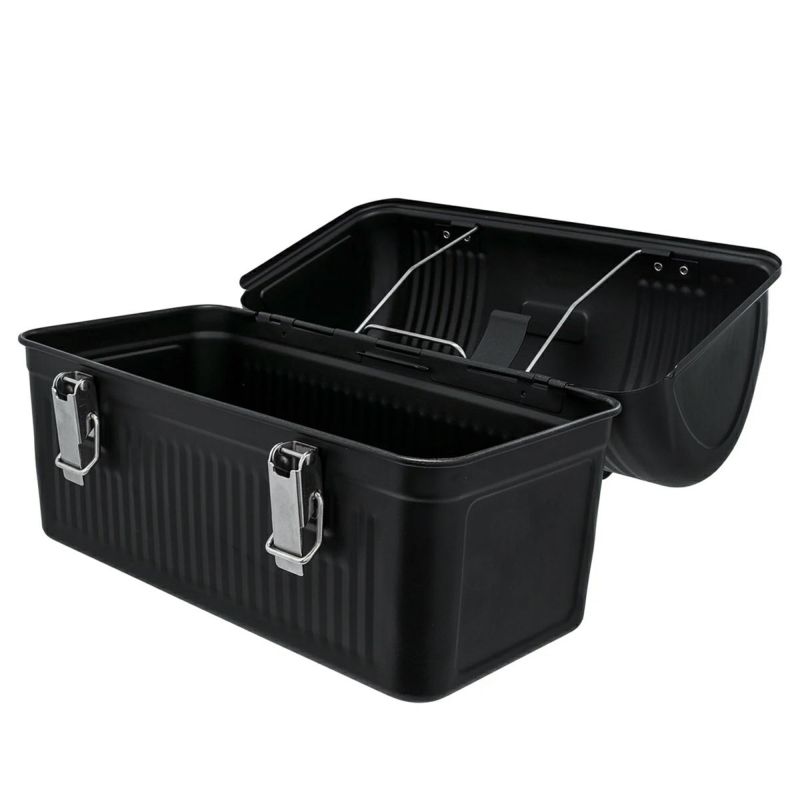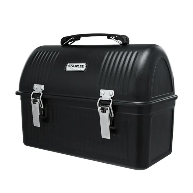 STANLEYファン待望の「クラシックランチボックス9.4L」が2020年以来の復刻販売となります。 ランチボックスとして、フードやドリンクのキャリー用としては勿論の事、工具を入れてツールボックスとしてのご使用や、ご自宅での収納BOXとしてもお使い頂けます。 また、国内初のブラックカラーもご用意しました。 シックなブラックカラーはこれまでにない唯一無二の存在感を放ちます。 フタ裏部分はボトルの収納が可能となっております。 金具は取り外し可能なので、高さのあるものを入れる際は外してご使用ください。 本体は頑丈なスチール製で取り扱いしやすく、ハンドル部分はポリプロピレン素材を使用することで持ち運びのしやすさも考慮されています。 ※保温・保冷の機能はありませんので、クーラーボックスとしてはご利用になれません。