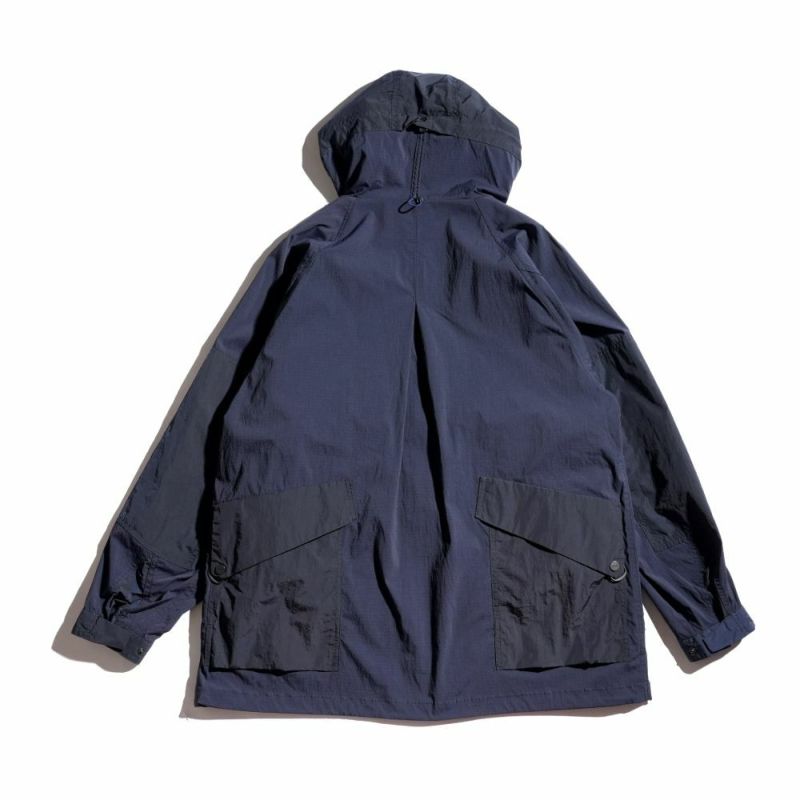 ライトウエイトで優れたストレッチ性、撥水機能を持つコーデュラリップストップ生地を使用したマウンテンパーカー。 オールシーズン対応のアクティブシーンにも最適なアイテムです。 フロントの大きなボックスポケット両サイドにはリブ付きのオリジナルデザインのウォームポケットが内蔵。 別布部にストレッチ性の無いナイロンリップ生地を使用するなど、必要な生地の特性をパーツにより使い分けているのも大きな特徴です。