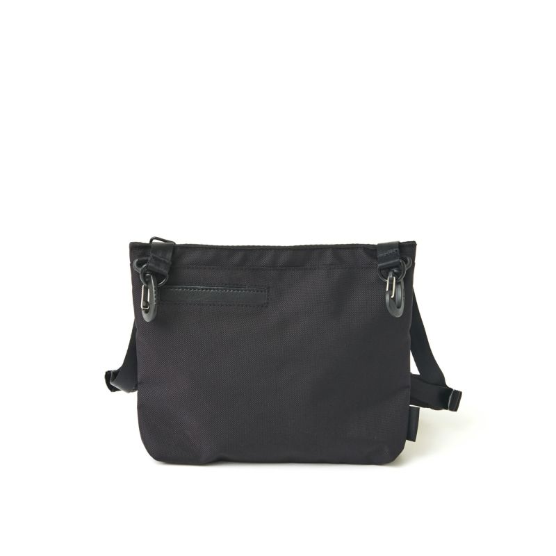 BALLISTIC NYLON シリーズ一覧はこちら 本体素材はタテ糸に1000D、ヨコ糸に840Dの66ナイロン糸を使用したオリジナルのCORDURA Ballistic® 生地になります。 タテ糸は500Dのブライト糸をATY加工 (機械を使用し糸自体に空気を含ませる) を施しスパンライク調にした後、撚ったものを2本引き揃え、ヨコ糸は420Dのブライト糸を撚ったものを2本引き揃えオックス織りしていますので、大変堅牢な生地になります。 また、タテ・ヨコで規格の違う糸を使用することで程よい光沢を残した深みのある生地になります。 付属レザーには北米産のステアレザーの優良原皮を、環境汚染の誘因となる薬品、有害物質の使用を排除し、ベジタブルタンニンで鞣された環境にも人体にも優しいヌメレザーを使用しています。 工場独自の染色加脂による加工技術により、ソフトな感じを残しつつも弾力、ハリのあるタッチ感や透明感があります。 仕上げには職人の手作業によるオイルグレージング仕上げを行い、仕上がりの状態を確認しながらさらにフェルトバフをかけての積み重ねにより、革に最上のタッチ感を出すように仕上げております。 ポーチとしても使用可能なサコッシュ型の 2WAY ショルダーとなります。前面に ZIP ポケット、背面にはオープンポケットを配置しております