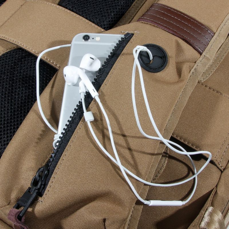 左ショルダーハーネスには、スマートフォンやイヤホンなどの小物を収納出来るジップポケットを配置しています。使わないときは、内側に折り込むことで、スマートに見せることも出来ます。