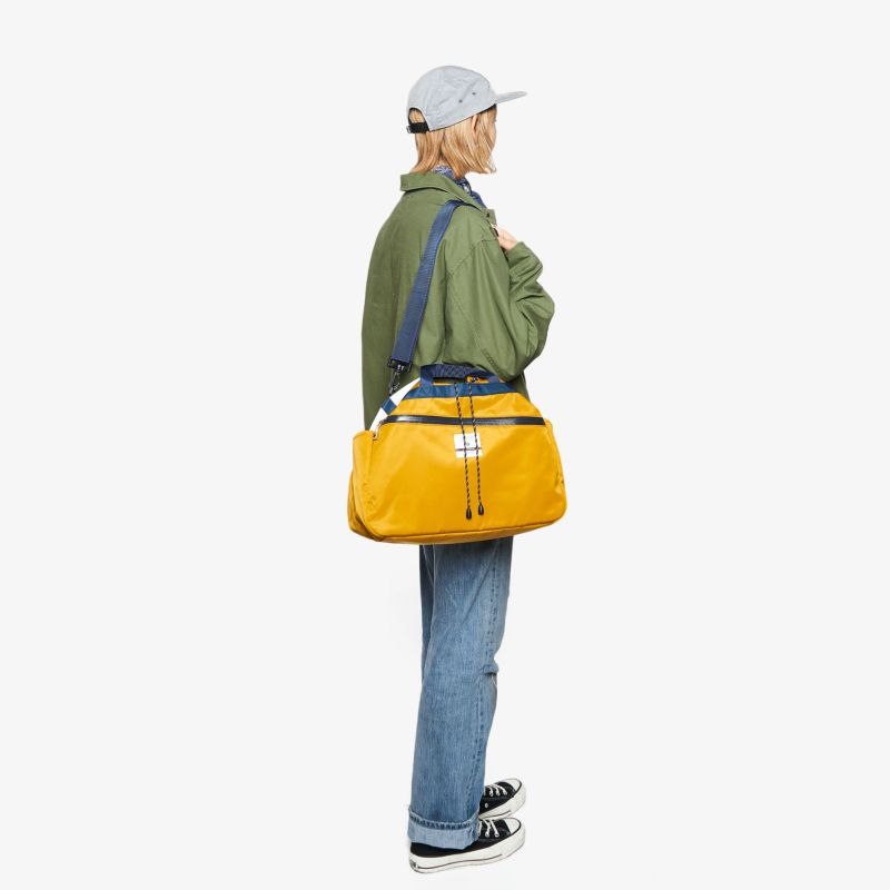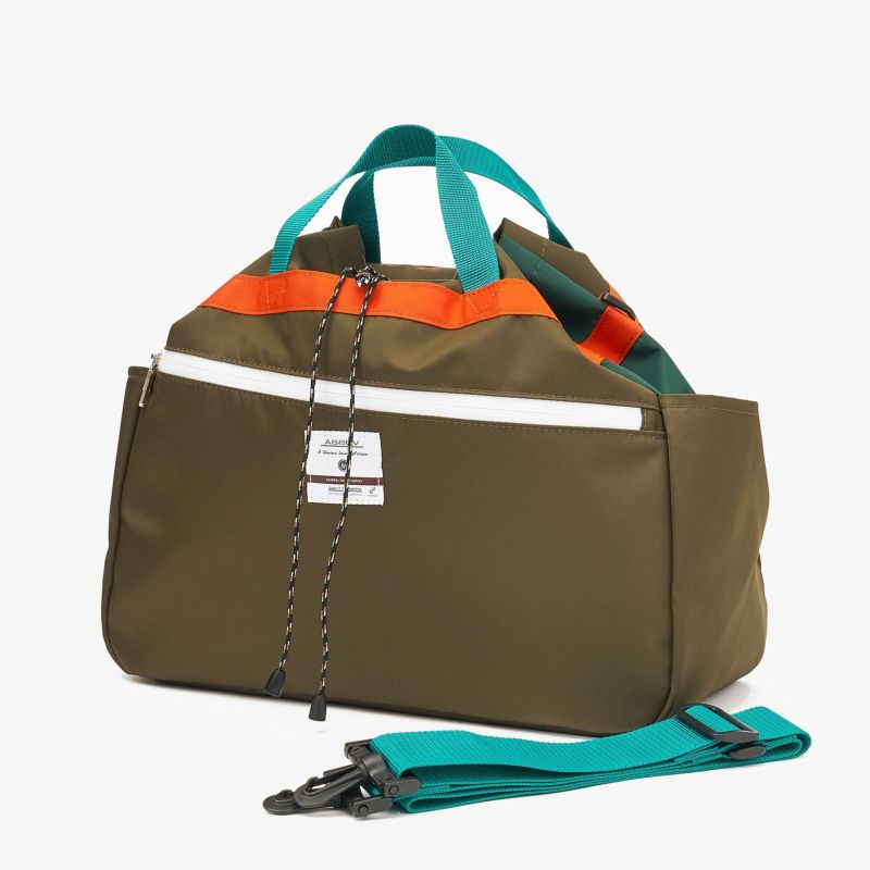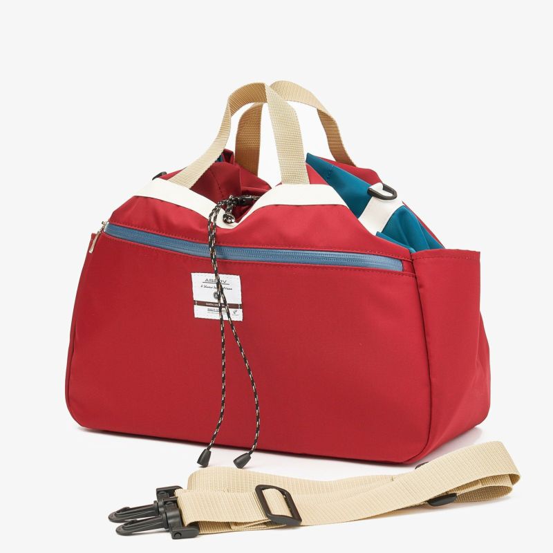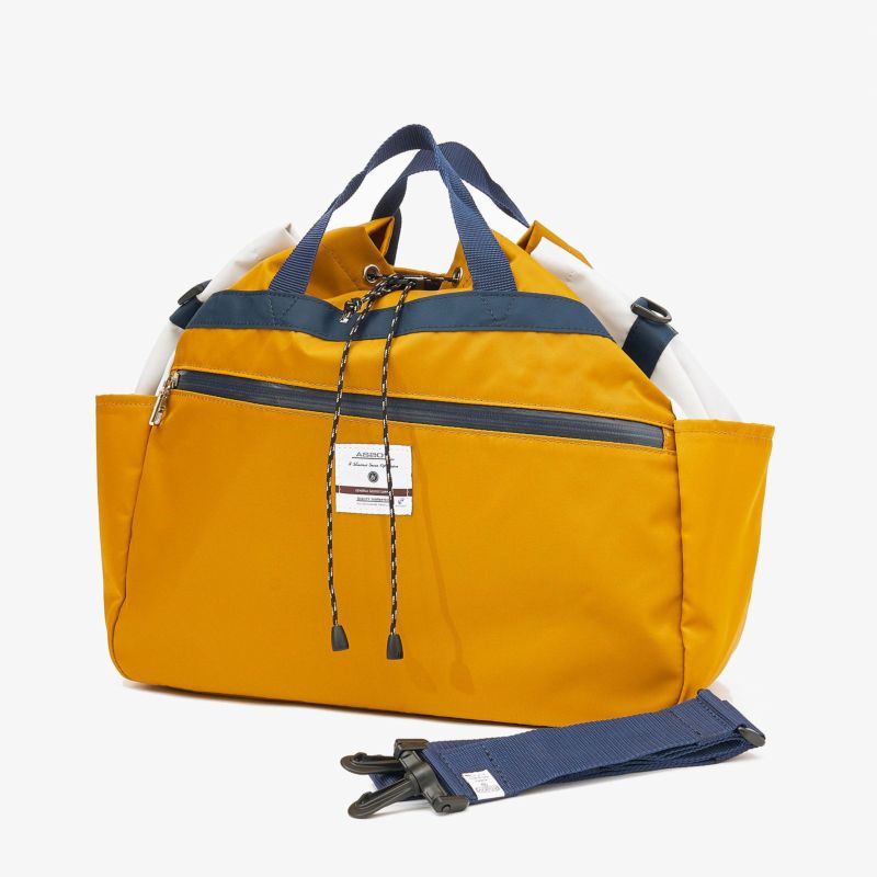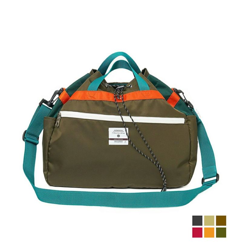 本体素材にはタテ 110d・ヨコ 210d のナイロン糸を使用した高密度ツイルを使用。 フライト ジャケットにも使用される高い耐久性と、発色性、撥水性、程良い光沢感を兼ね備えた素材です。 キャンプのときにお風呂場に行くときに持ったり、 海に遊びに行ったときにタオルや日焼け止めを入れたり、 軽くてどこにでも持って行ける、アウトドアフィールドで使ってもらうイメージの気軽な巾着型ショルダーバッグです。 マチ幅が大きいので、タウンユースでおしゃれなパパ・ママバッグとしてもおすすめです! 本体素材と止水ZIP、テープなどをコンビネーションして、AS2OVらしい「この組み合わせでくるか!」というカラーは6色ご用意。