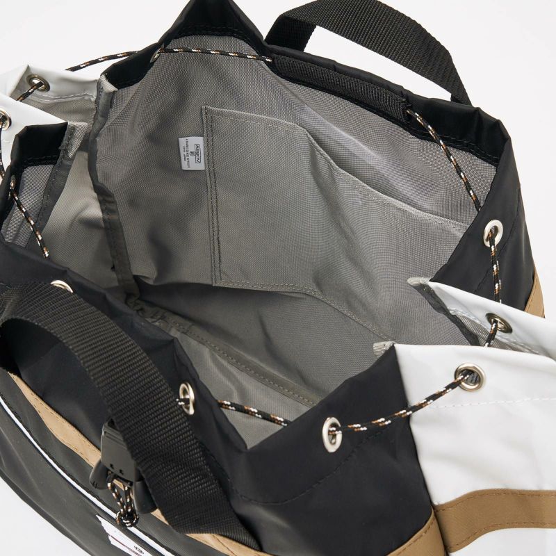 NYLON 110D×210D 本体素材にはタテ 110d・ヨコ 210d のナイロン糸を使用した高密度ツイルを使用。フライト ジャケットにも使用される高い耐久性と、発色性、撥水性、程良い光沢感を兼ね備えた素材です。 本体素材と止水ZIP、テープなどをコンビネーションしたカラーリングが特徴的なシリーズです。