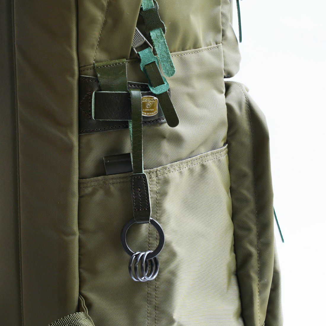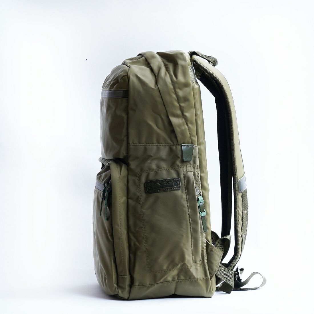 本体素材にはタテ110D・ヨコ210Dのナイロン糸を使用した高密度ツイルを使用。 フライトジャケットにも使用される高い耐久性と、発色性、撥水性、程良い光沢感を兼ね備えた素材です。 付属レザーには、ベジタブルタンニンで鞣すことで革本来の風合いを生かしたヌメレザーを使用しております。 仕上げにオイルを加えアイロンで熱を加えることで、ナチュラルな焼け感が出ており更に経年変化を楽しめる素材となっています。 ネームはオリジナル刻印レザーネーム、ファスナーにはAS2OVオリジナル引き手を使用しております。 本体サイドディティールには専用のキーホルダーとキーポケットを備え、オリジナルエポホックで脱着可能です。 またバックパックにもAS2OVオリジナルの金具を使用し、機能性も充実したシリーズになります。 MADE IN JAPAN
