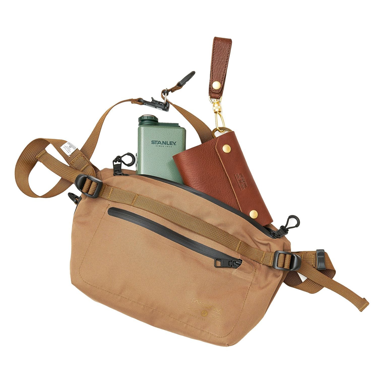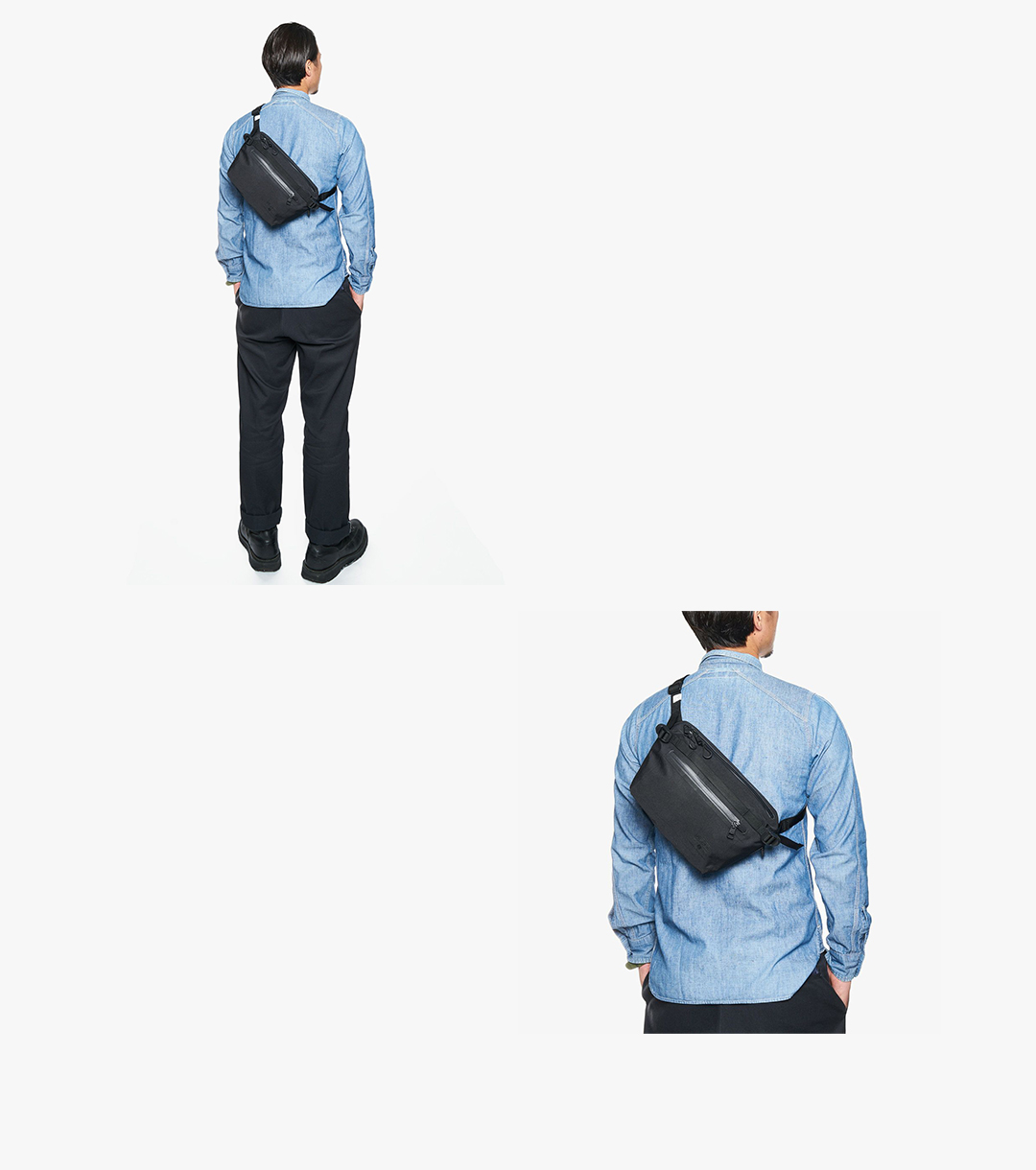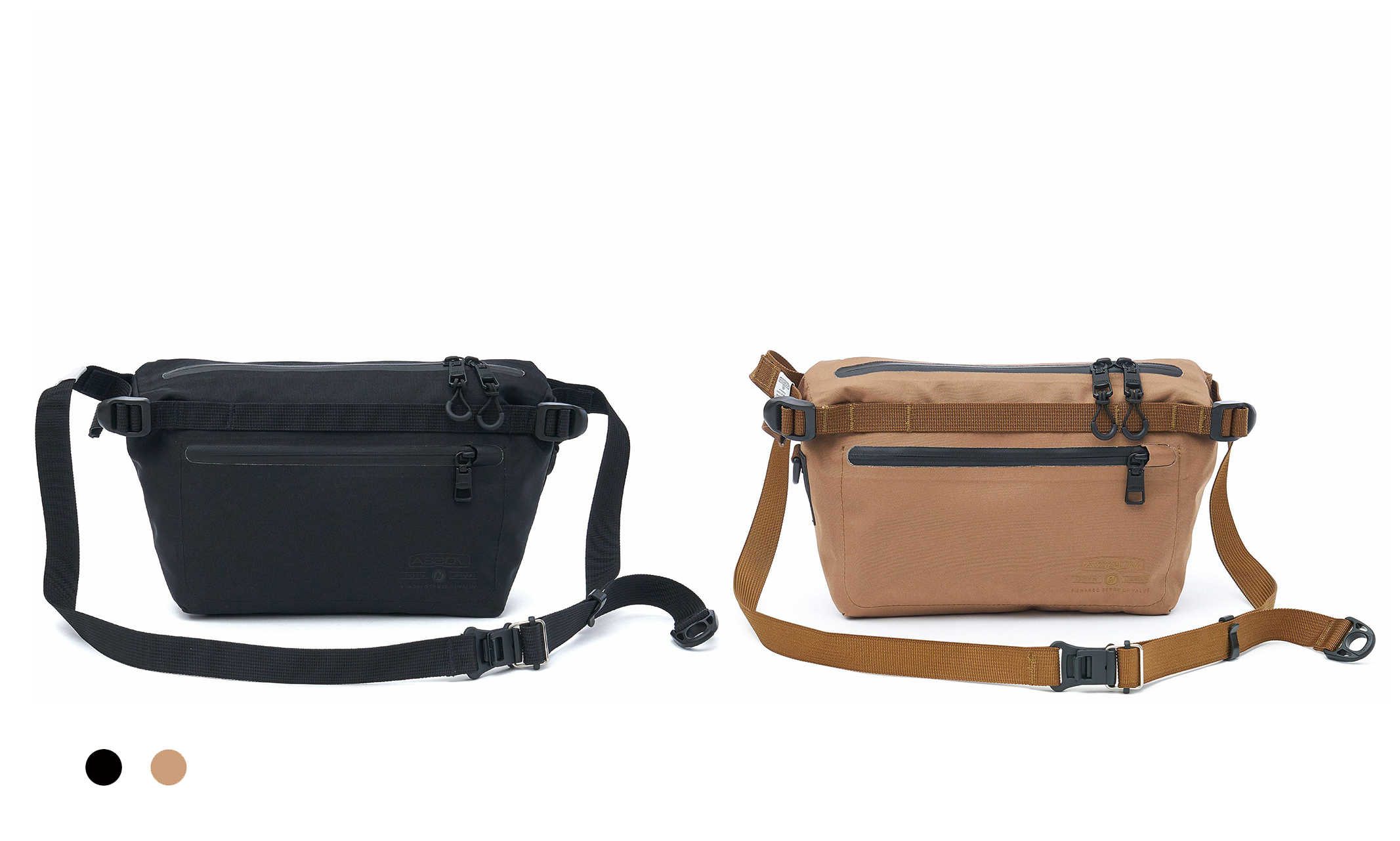 AS2OVデザイナーが開発に2年近く要した、タフで防水なWATERPROOFシリーズのファニーパック。丸みのあるシルエットが特徴的で、ペットボトルなども入る機能的なサイズ感に仕上がっています。生地が厚くないので、折り込んでコンパクトにすることも出来ます。