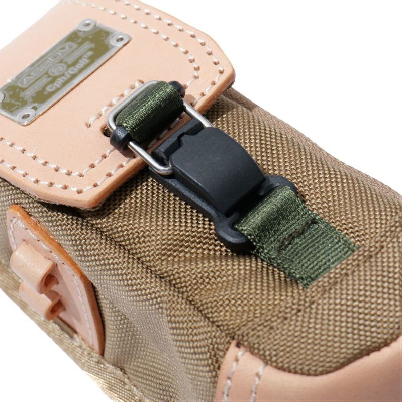 革もナイロンもデザインにおけるこだわりは盛だくさん。同時にAS2OVが本モデルに落とし込んだ利便性(機能性)はFIDLOCK社のマグネットパーツです。フラップに付くバックルはマグネット製なので簡単に開け閉めできますし。右側面につくボタンのようなパーツにはマーカーを付ける事ができます。