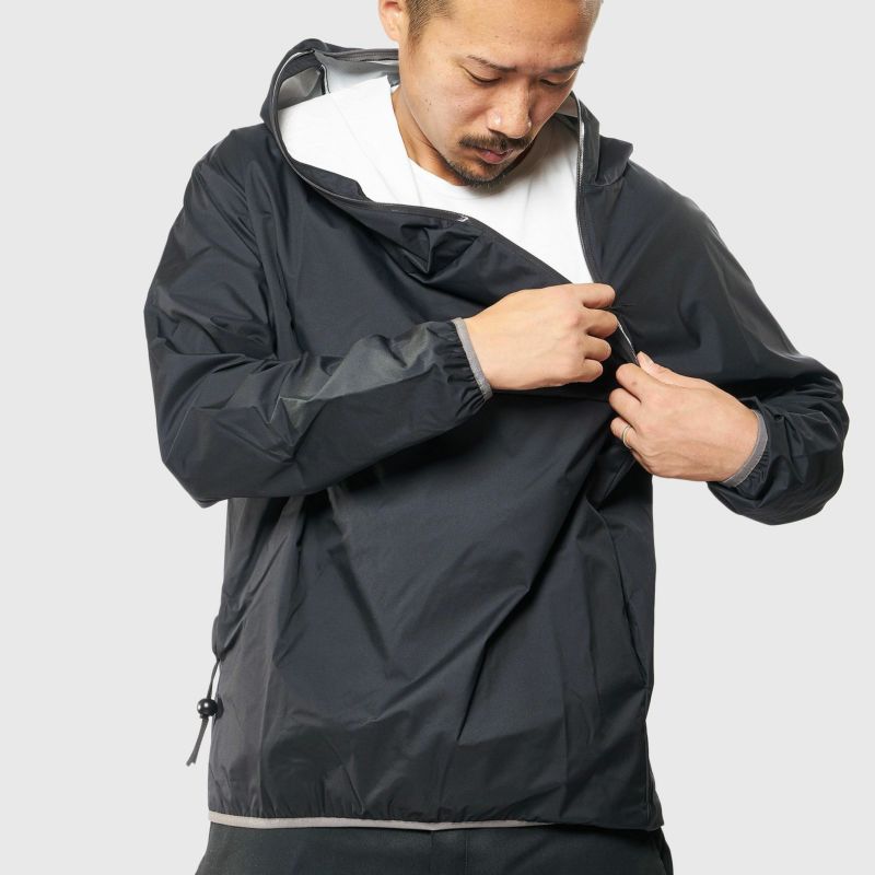 CAMP SERVICEのSLASH PARKA”(スラッシュパーカー)UNBY別注モデルです。 ボディは防水、透湿、保温、ストレッチ性を兼ね備えた機能素材ZAMZA®を使用しアクアガード(止水)ファスナーを斜めに走らせた独自デザインはまさにミリタリーアウトドア。 右にUNBYのロゴがプリントされています。 目だけ出る位置にジッパーをとめたり、アウターのインナーとして着てもつかえます。 また、パッカブルタイプなので旅のお供にも重宝します。