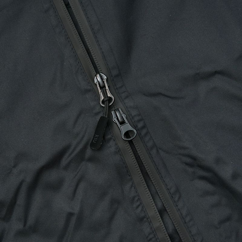 KiUポンチョの特徴ともいえるフルジップ(全開前開き)はバックパックを背負ったままでも着脱ができて非常に便利です。袖めくり用ベルトを使えば半袖になり身軽に、寒いときはサッと羽織ることでアウターとしても役に立ちます。小物を入れておけるよう片側にポケットあり。