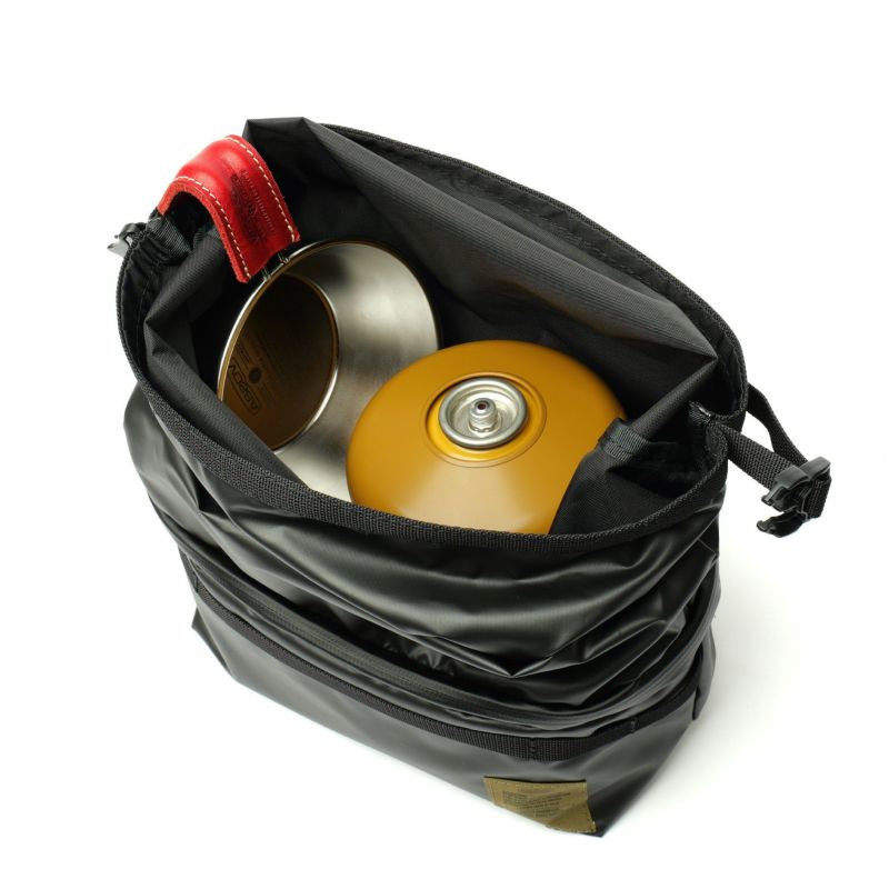 本体素材は、210Dナイロンにポリカーボネートのコーティング を施した生地を使用しています。PUコーティングに比べ 剥離の耐久性が強く生地自体の防水性の持続性にも優れた素材です。