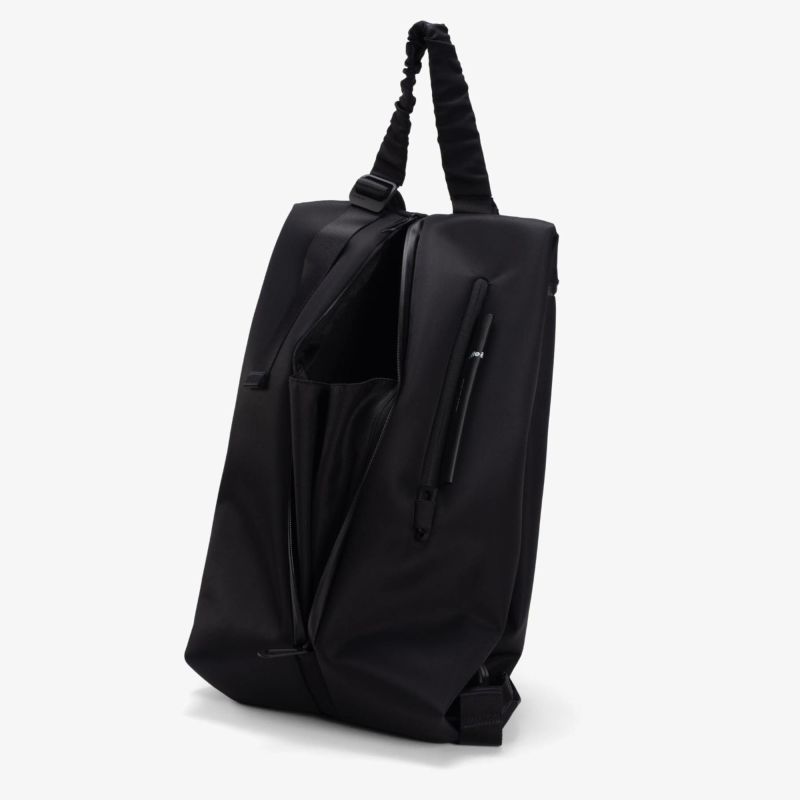 DALA は今季の新しい形のバックパックで、体の自然な輪郭に沿いながら、荷物の負荷がかかると形が変化します。 縦型のフロントコンパートメント、フロントジッパーポケット、外側サイドポケットが特徴で、 DALA の長さに沿った背面パネルにラップトップコンパートメントを備えています。 Sleek Blackナイロンを使用しています。 Your browser does not support the video tag.