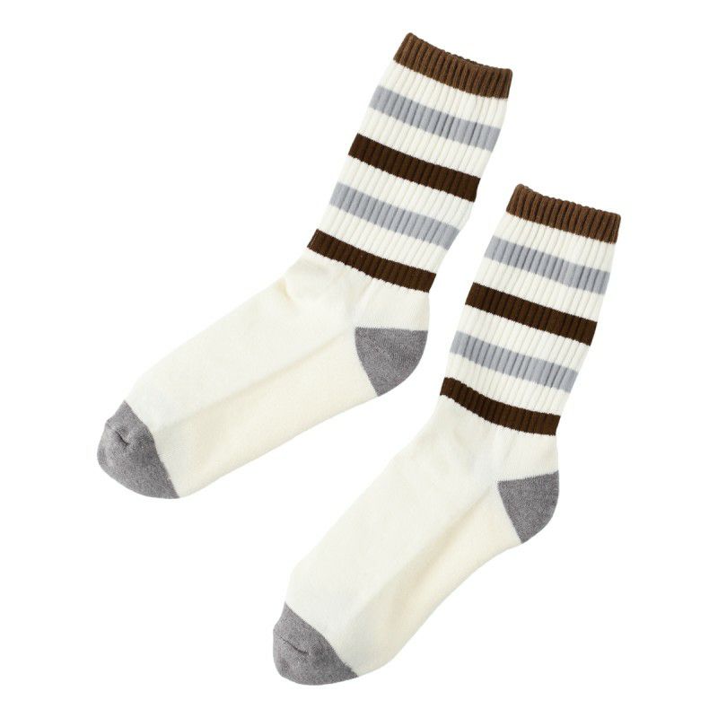 Chi-bee チービー ボーダーソックス GY/BR グレーブラウン