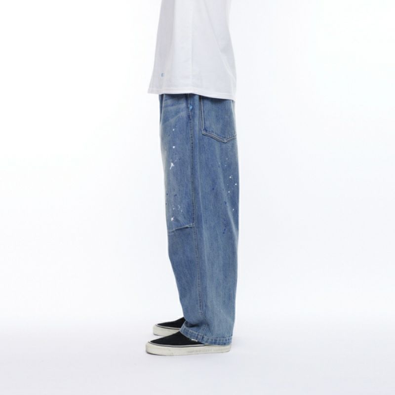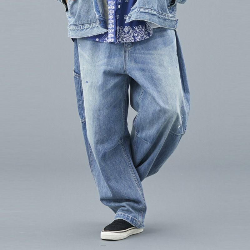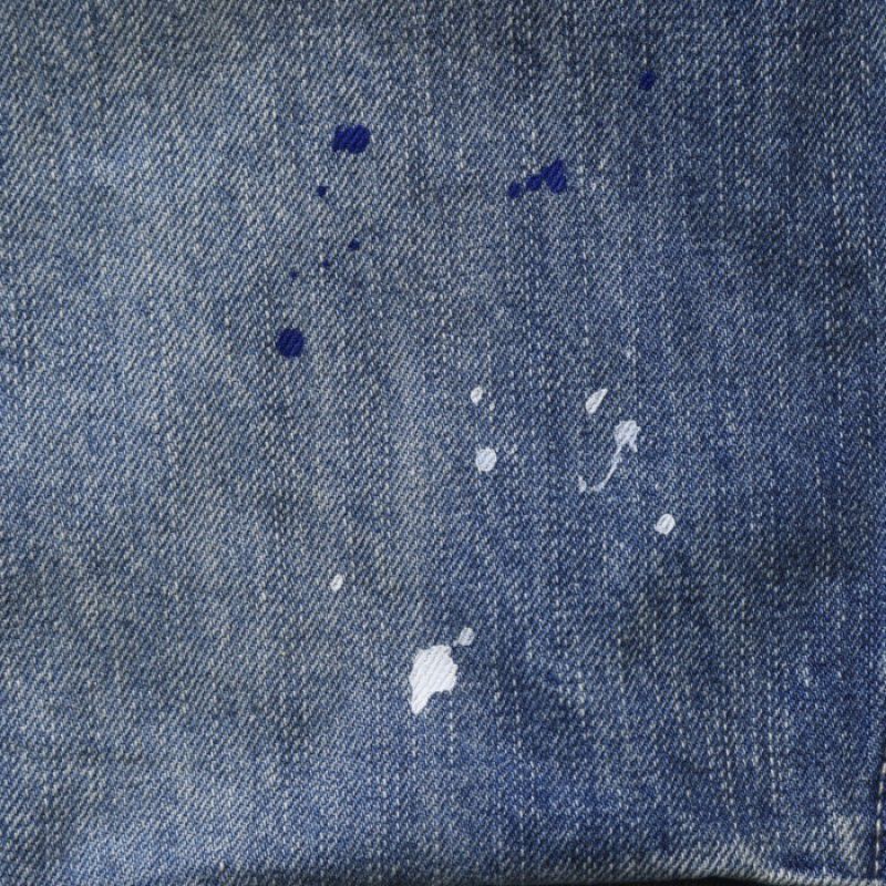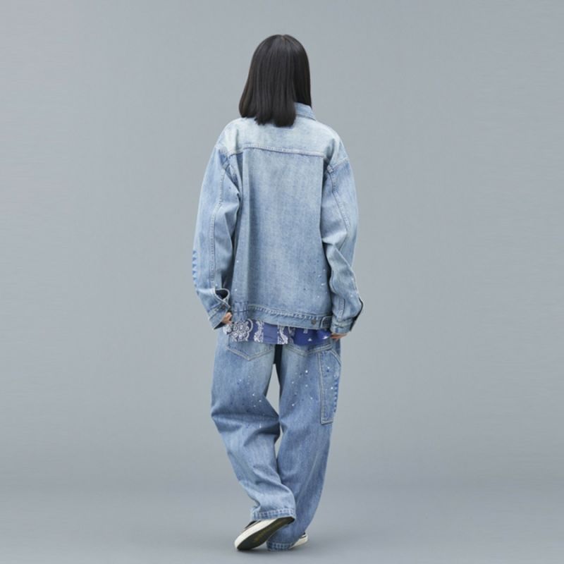 丁寧に施されたヴィンテージ加工が特徴的な、11.5ozのデニムを使用したサルエルデニムパンツ。 ポケット周り、ベルトループにはロープを入れて補強、全体にペンキ加工を施したリアルな加工感のルックスに仕上げました。 ライトオンスなため軽く、通年で着用できる快適性があります。 また、同タイプのデニムジャケットとセットアップでも着用可能です。 右背面ポケットにトライバル柄のプリントが入ります。 右後ベルト部分には民族調の柄を刺し子で表現したパッチが付きます。