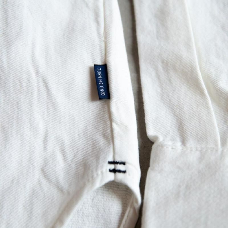 【裏地はガーゼで包まれるような柔らかさ!】 二重織りの良さをぜひ。 シンプルな見え方だけではなく、裏地がガーゼで柔らかさと表面の張りを同時に楽しむことができます。 適度に風を感じることもできて、インナーにすると保温性が高いこともオススメのポイントです。 3つのボタンで胸元の開き具合を調節。 大き目なボタンがポイントにもなります。 使い込むほどに馴染むので、経年変化もお楽しみください。