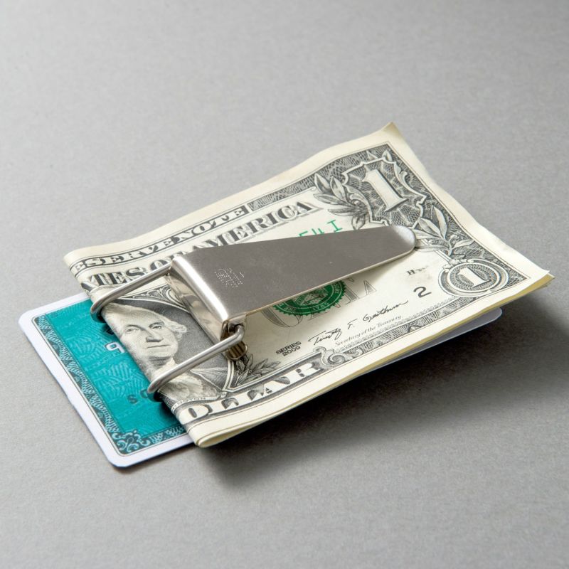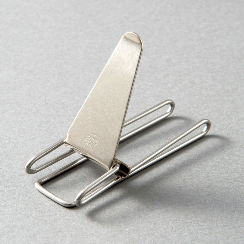 1930、1940年頃に製造されていたマネークリップの機構をベースにカードホルダーなどの機能を新たに追加し制作。 お札は20枚まで、クレジットカードは6枚まで収納できます。 candy design works デザイナーインタビューはこちら