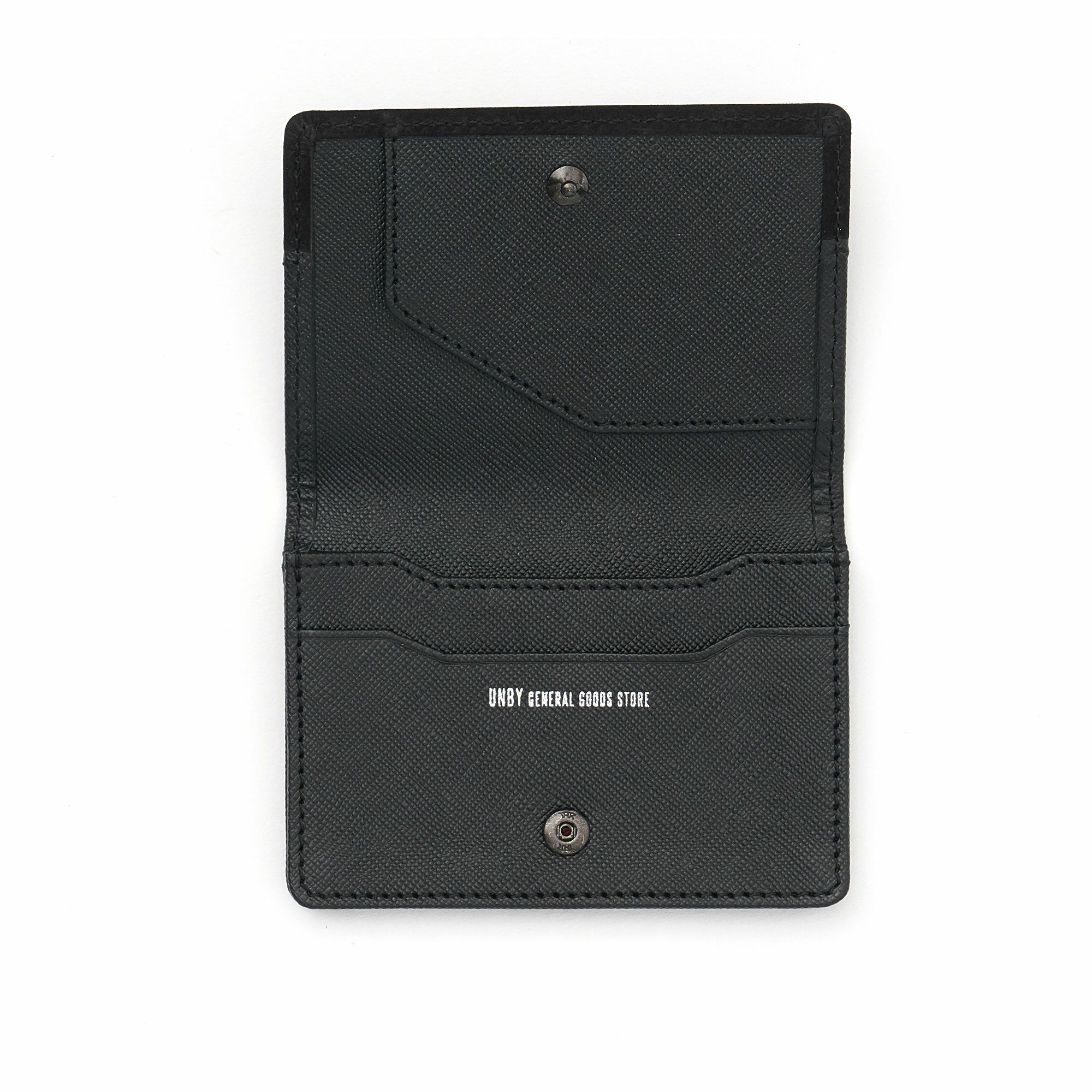 WISCEのUNBY別注モデルです。 ALLブラックに仕上げて、もっと大人の雰囲気を楽しめる、高級感のあるカードケースです。 内装にUNBY GENERAL GOODS STOREのシルバーの箱押しがあります。