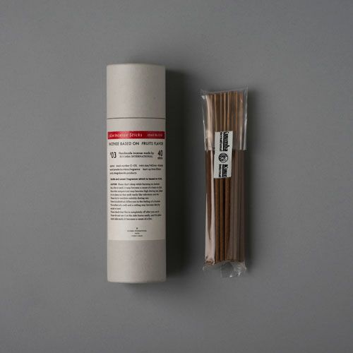 天然素材を原材料に使用し、すべての行程を手作業で行うインセンスブランド"KUUMBA"別注のオリジナルフレグランスを軍隊の支給品をイメージしたパッケージで制作。約一ヶ月は使用して頂けるように40本のパックになっています。 candy design works デザイナーインタビューはこちら