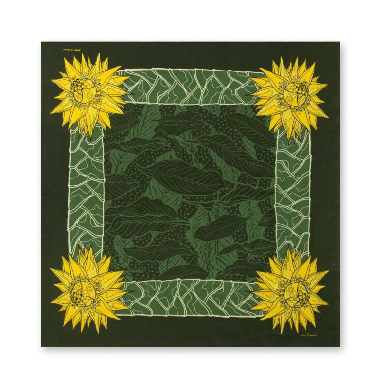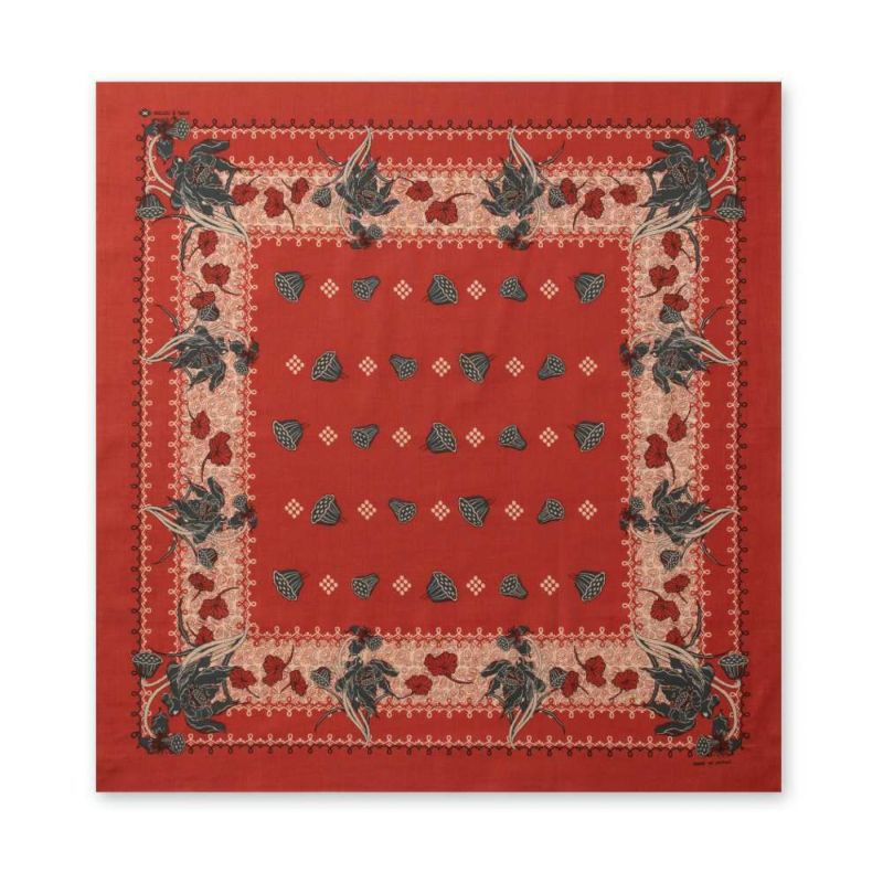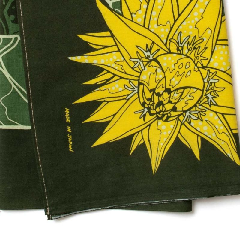 【Musella lasiocarpa】 このデザインは、植物をモチーフにしています。ゴールデンロータスバナナは、中国雲南省原産の植物です。細部はすべて植物そのものから得たもので、中央のバナナリーフカモフラージュ柄が、程よい繰り返しのパターンを生み出しています。ダークな色合いなので、一年を通してコーディネートしやすいバンダナです。 【Dead Lotus】 「枯れた花」をテーマに選びました。黒と赤のみを使用しているため、バンダナとの相性が抜群です。 One Ear Brandにとってタトゥーアーティストとのコラボレーションは初めてでしたが、このデザインは1800年代の伝統的なバンダナとタトゥーアートの絶妙なバランスが取れています。枯れた蓮と種子の鞘が描かれています。 【Sphinx】 スフィンクスはロデオバンダナとモダンなバンダナをベースにしたデザイン。 ラクダのブランド・ステッカーの作者である加賀聡が描いたこのデザインは、奥行きがありながら非常にシンプル。 砂漠の砂丘を走るラクダの列車。外縁にはデザイン全体を保護するウロボロス。生命が生命を消費する象徴である。中央にはなぞなぞの形をしたスフィンクス。 大きなピラミッドが真ん中にあり、とてもクールです。暖かい季節のファッションにぴったりです。 【Uma】 Umaは、加賀聡と数ヶ月前から取り組んでいたデザイン。主なアイデアは、青と白の陶器をベースにしたデザインを作ることでした。東洋と西洋の要素を少し取り入れ日本の馬蹄と西洋の馬蹄が混ざっています。濃い色合いは濃いインディゴ、薄い色合いはパリジャン・ブルーです。バランスを取るために、エクリュのディテールを少し入れています。